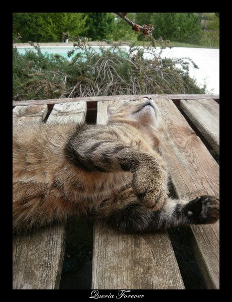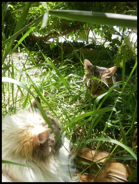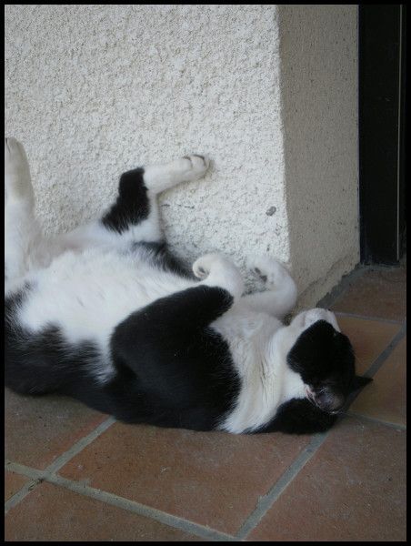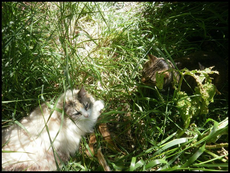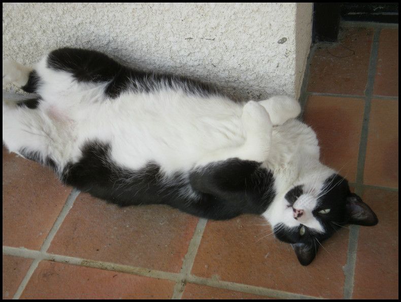 | Oui oui il fait chaud et les animaux supportent comme ils peuvent la chaleur.... Voici mes 3 chats: Sassy,Athos et Chabou...