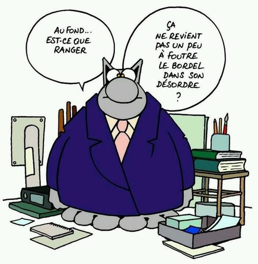 Déconnecté | Le désordre c'est incompatible avec la propreté Une amie s'est vue larguée par sa femme de ménage parce que décidément c'etait impossible pour elle de passer l'aspi ou l'éponge sauf à faire semblant là où c'est ''à decouvert'' La mienne m'a larguée pour raisons de santé, j'ai apprécié son aide, mais autant ça me gênait pas qu'elle vienne quand je bossais, autant j'arrive pas à concevoir me prélasser sur le canapé ( comme je ne bosse plus, et que la météo ne me donne pas toujours l'occasion de m'activer dehors) pendant qu'elle s'échine Du coup je n'en reprends pas |