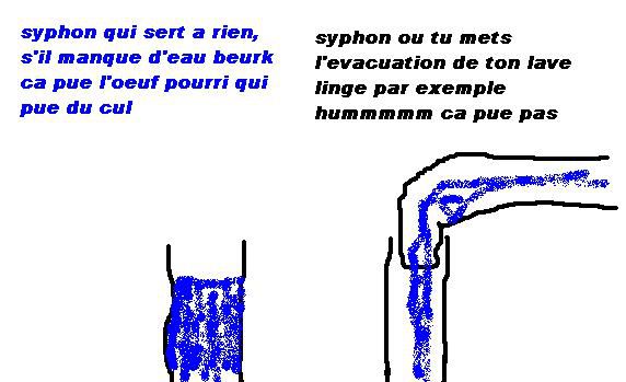 | Dire merci | ben le syphon d'evacuation, faut mettre de l'eau dedans s'ils sont raccordé a rien et j'en ai un mais il est derierre les placard de ma cuisine et je sais pas comment je vais y acceder ![]() |