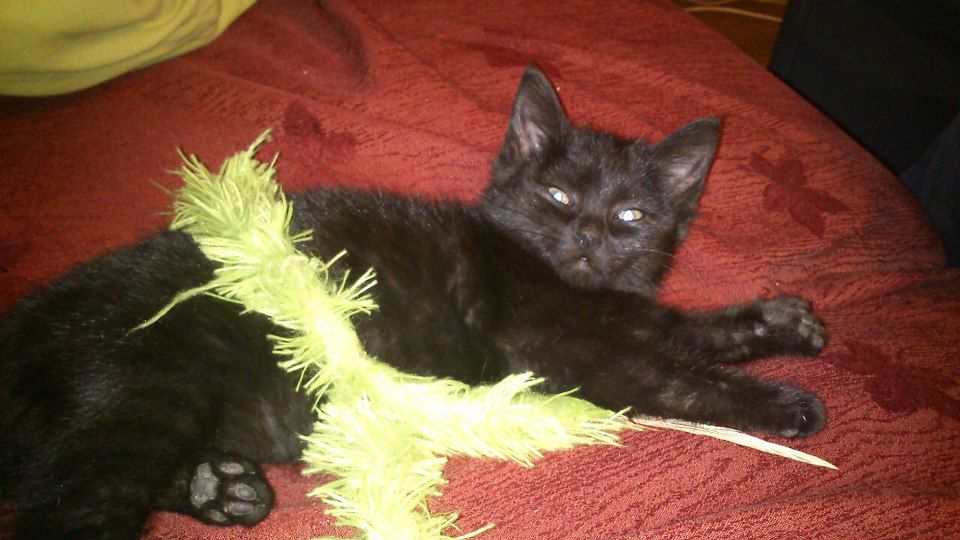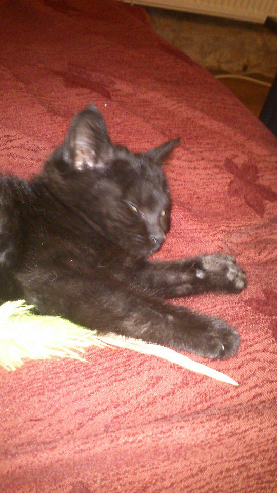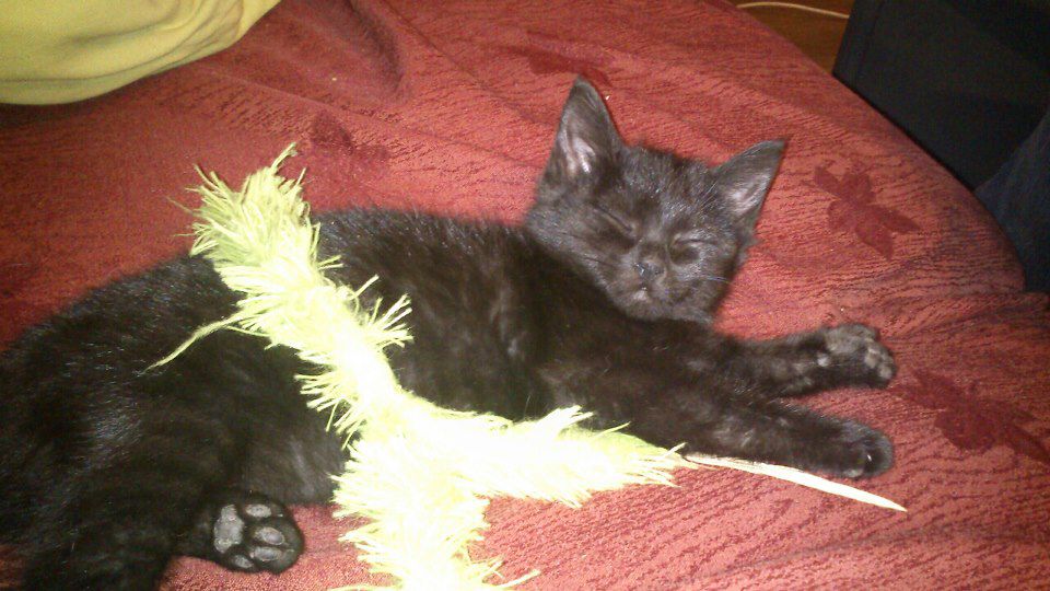 | Dire merci | La petite noiraude va bien ! c'est devenu en une semaine un chaton de canapé !! elle kiff trop ses nouveaux jouets ! hihi |