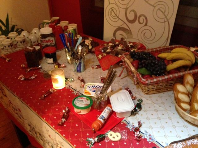 | Dire merci | La collègue a décidé de féter la St Nicolas. Ce matin on a eu 2 grosse poches de viennoiseries. |