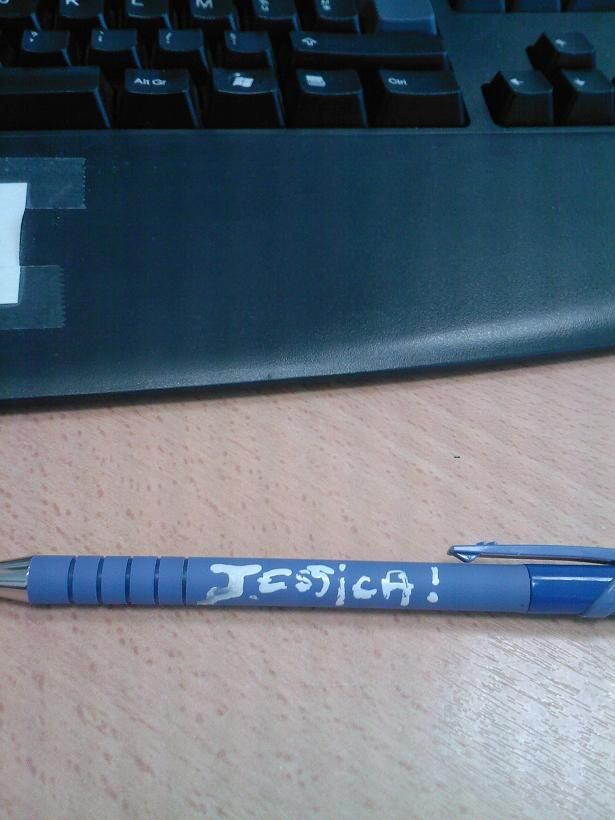 | Dire merci | Au boulot j'ai dû écrire mon nom sur mon stylo c'est fou ça ! sinon jme retrouve tt le tps sans stylo tt le monde me les pique ! au moins maintenant j'ai tjs celui là ![]() |