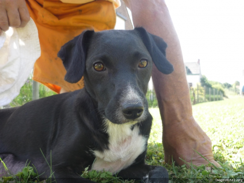 | Dire merci | bonjour!! voilà, samedi matin, j'ai trouvé une petite chienne sur le bord de la route ... Elle était là quand je suis passée à 7h, et elle était toujours là quand je suis repassée à 10h, mais cette fois, elle pleurait, faisait "le loup" .... je l'ai embarquée. Elle a des mamelles ENORMES, donc, je pensais à une maman qui s'est égarée ... j'ai cherché dans les trois villages avoisinants et : elle n'est à personne! Direction véto : pas de puce électronique! Au vue de la vulve : pas de chiots, c'est plutôt une grossesse nerveuse. Elle a un traitement pour cette semaine, mais par après, nous ne pouvons pas la garder!!! Nous lui cherchons donc une nouvelle famille .... c'est une petite chienne de 40-50 cm au garrot. Elle est noire, avec du blanc sur le poitrail et au bout des pates ... On pense qu'elle a un peu de Jack Russel, vu sa bouille. C'est un amour. Nous sommes en appartement, et elle est très calme. Un peu collante ... elle réclame beaucoup de caresses. Elle a besoin d'une bonne dose d'amour! Assez craintive ...! Elle est propre. D'après le véto, elle a entre 2 et 3 ans. Gentille avec les chats. Je ne sais pas pour les chiens. Elle a du mal à marcher en laisse car elle est très couillonne ... mais une fois qu'elle aura confiance en vous, elle suivra volontiers : ça commence à venir avec nous! Même si vous ne pouvez pas, parlez en autour de vous! Merci pour elle! Ps : je suis en Belgique. Donc quelqu'un de Belgique ou du Nord de la Fance serait l'idéal. (sauf si vous êtes prêt à faire des kilomètres )[url=http://www.imageshotel.org/images/surinette/p1020109.jpg] [/url] |