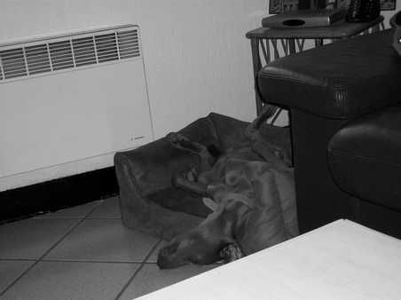 | Dire merci | Les pattes derrière lui (comme la photo de Fréhelle) je ne l'ai jamais vu... En fait il est souvent roulé en boule dans son panier, comme les chiens de traîneau. Chez nous le carrelage est très froid, donc il ne s'étend pas sur le sol, il n'a que son panier... Tu m'inquiètes, là, que soupçonnes-tu? ![]() Je suis d'un naturel parano, surtout avec ce chien... |