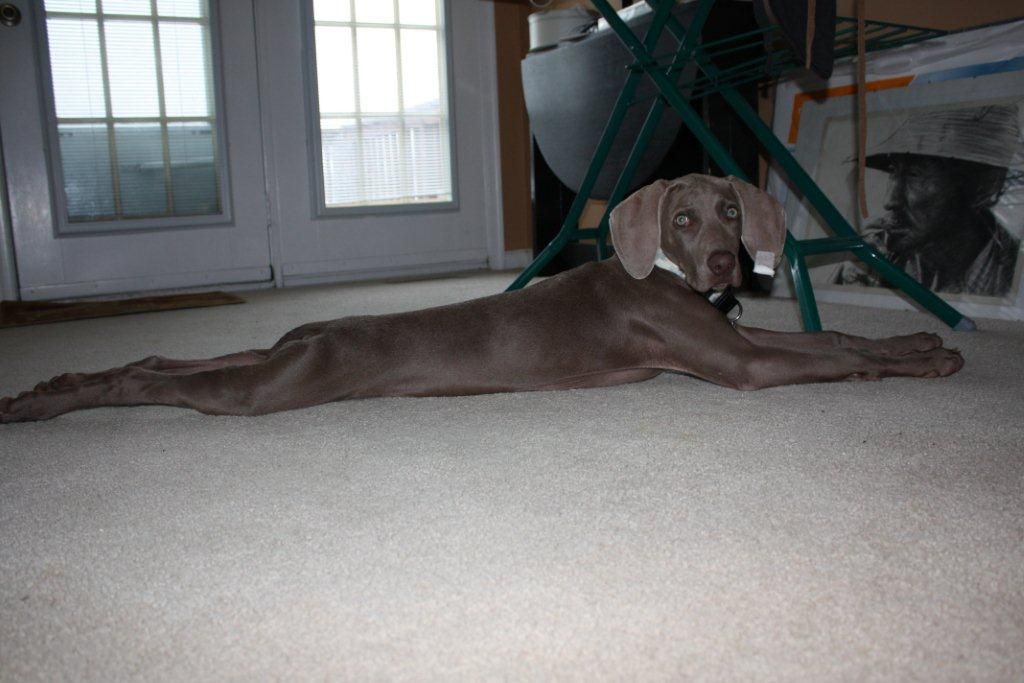 | Dire merci | un weimar ça déclare une belle conjonctivite à cause des pollens et ça a une verrue sur la tête .Un weimar, ça n'a pas le sens de la mesure et de belles dents blanches :![]() Et c'est souple (ou qu'est-ce qu'un weimar ne ferait pas pour déchiqueter un bâton ) :![]() On se tâte à faire une expo en juillet , on trouve qu'il s'est étoffé ![]() |