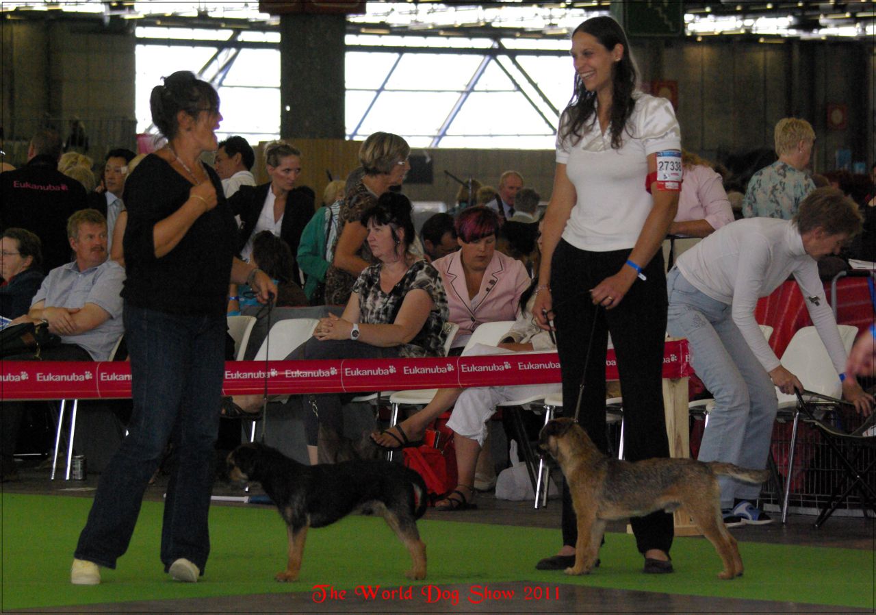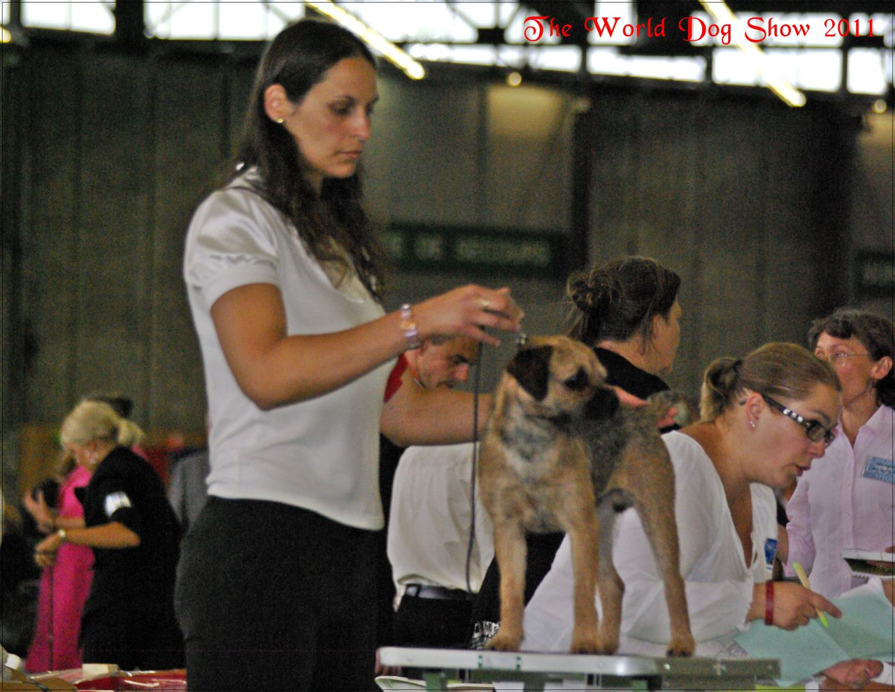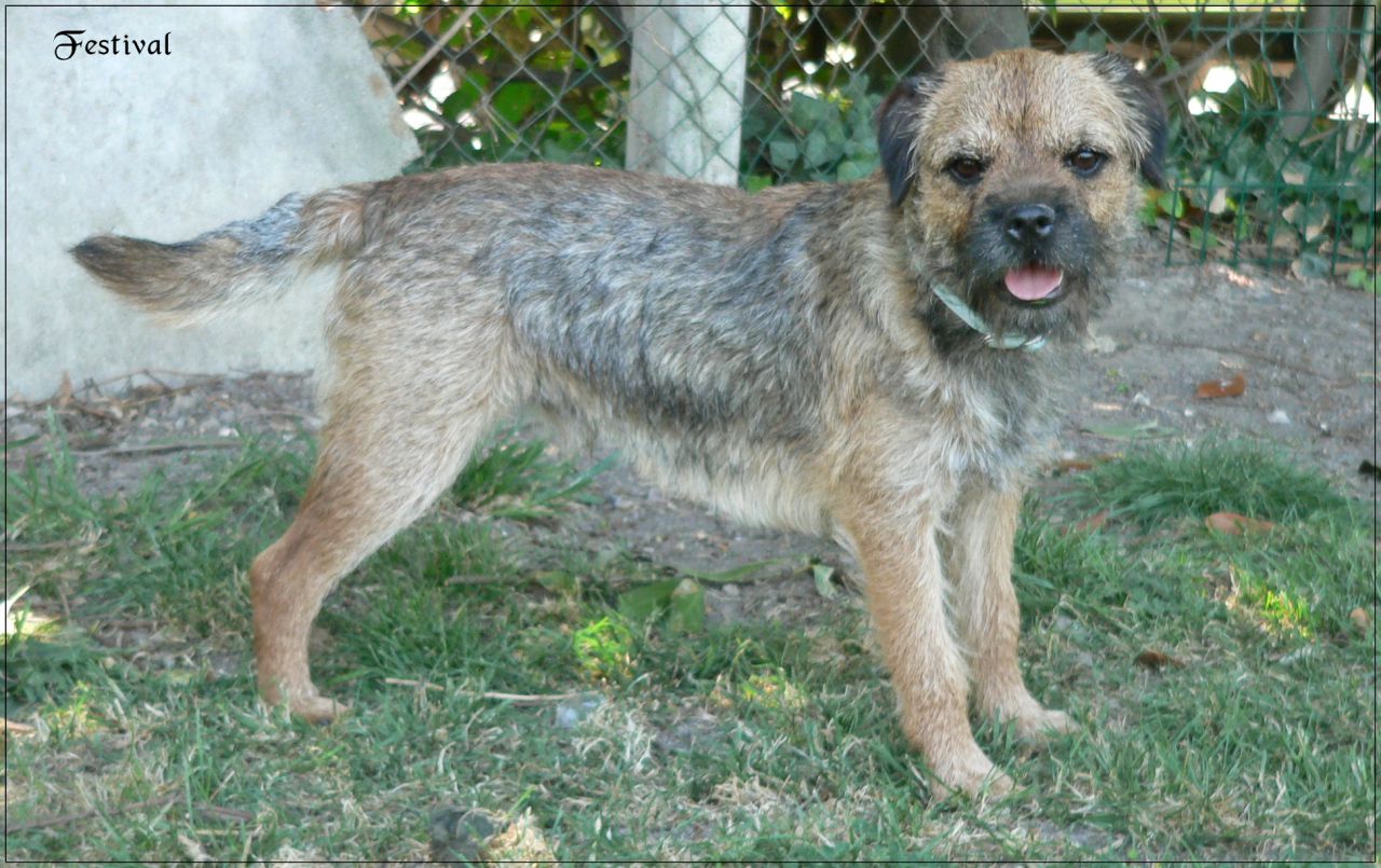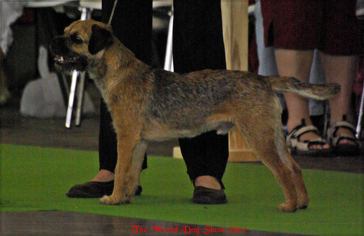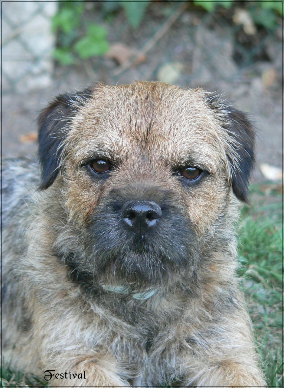 | Dire merci | (après le BA, les dobermans,...) Allez je lance ce post, à force de faire du hors sujet un peu partout. Je sais qu'il y a pas grand monde qui connait la race et qui en possède. On est déjà 2 sur le forum avec Pitch. Maevan, c'est pour quand ? Post fait pour une avalanche de photos, d'anecdotes, de résultats, de naissances....et pour tout savoir sur la race ![]() ![]() Le club de race Lien Alors voilou le standart STANDARD F.C.I.: n°10/ 27.04.1998 / F BORDER TERRIER. TRADUCTION: Prof. R. Triquet. ORIGINE: Grande Bretagne. DATE DE PUBLICATION DU STANDARD D'ORIGINE EN VIGUEUR: 24/06/1987 CLASSIFICATION F.C.I.: Groupe 3-Terriers Section 1- Terriers de grande et moyenne taille. UTILISATION: Terrier. Sans épreuve de travail. ASPECT GENERAL: essentiellement un terrier de travail. Capable de suivre un cheval. COMPORTEMENT/CARACTERE: Combinant activité et courage. TETE: La tête ressemble à celle d'une loutre. REGION CRANIENNE: Crâne: Modérément large. REGION FACIALE: Truffe: On préfère la truffe noire mais la truffe couleur foie ou chair ne constitue pas un défaut grave. Museau: Court et fort contre la joue. Mâchoires/Dents: articulé en ciseaux, c'est-à-dire que les incisives supérieures recouvrent les inférieures dans un contact étroit et sont implantées à l'aplomb dans les mâchoires. La denture juste (incisives bord à bord) est acceptable. Le prognathisme inférieur ou supérieur constitue un défaut majeur et doit être rejeté. Yeux: foncés, à l'expression vive. Oreilles: petites, en forme de V. Elles sont modérément épaisses et tombent vers l'avant tout. COU: de longueur modérée. CORPS: Haut, étroit et assez long. Rein: Fort. Poitrine: Côtes bien cerclées vers l'arrière du thorax mais pas en plein cintre, les deux mains devant pouvoir faire le tour d'un Border Terrier saisi par les épaules. QUEUE: modérément courte et assez épaisse à la base, elle va ensuite en s'amenuisant. Elle est attachée haut et portée gaiement mais pas recourbée sur le dos. MEMBRES: Membres anterieurs Droits; leur ossature n'est pas trop lourde. Membres posterieurs: bien profilés. PIEDS: petits, les coussinets sont épais. ALLURES: allures dégagées permettant de suivre un cheval. PEAU: Epaisse. ROBE: Poil: le poil est dur et dense et le sous-poil serré. Couleur: rouge, froment, grisonné et feu ou bleu et feu. POIDS: Mâles: entre 13 et 15,5 livres anglaises (5,9kg et 7,1kg). Femelles: entre 11,5 et 14 livres anglaise (5,1kg et 6,4kg). DEFAUTS: tout écart par rapport à ce qui précède doit être considéré comme un défaut qui sera pénalisé en fonction de sa gravité et de ses conséquences sur l'aptitude des terriers au travail. N.B.: Les mâles doivent avoir deux testicules d'apparence normale complètement descendus dans le scrotum. |