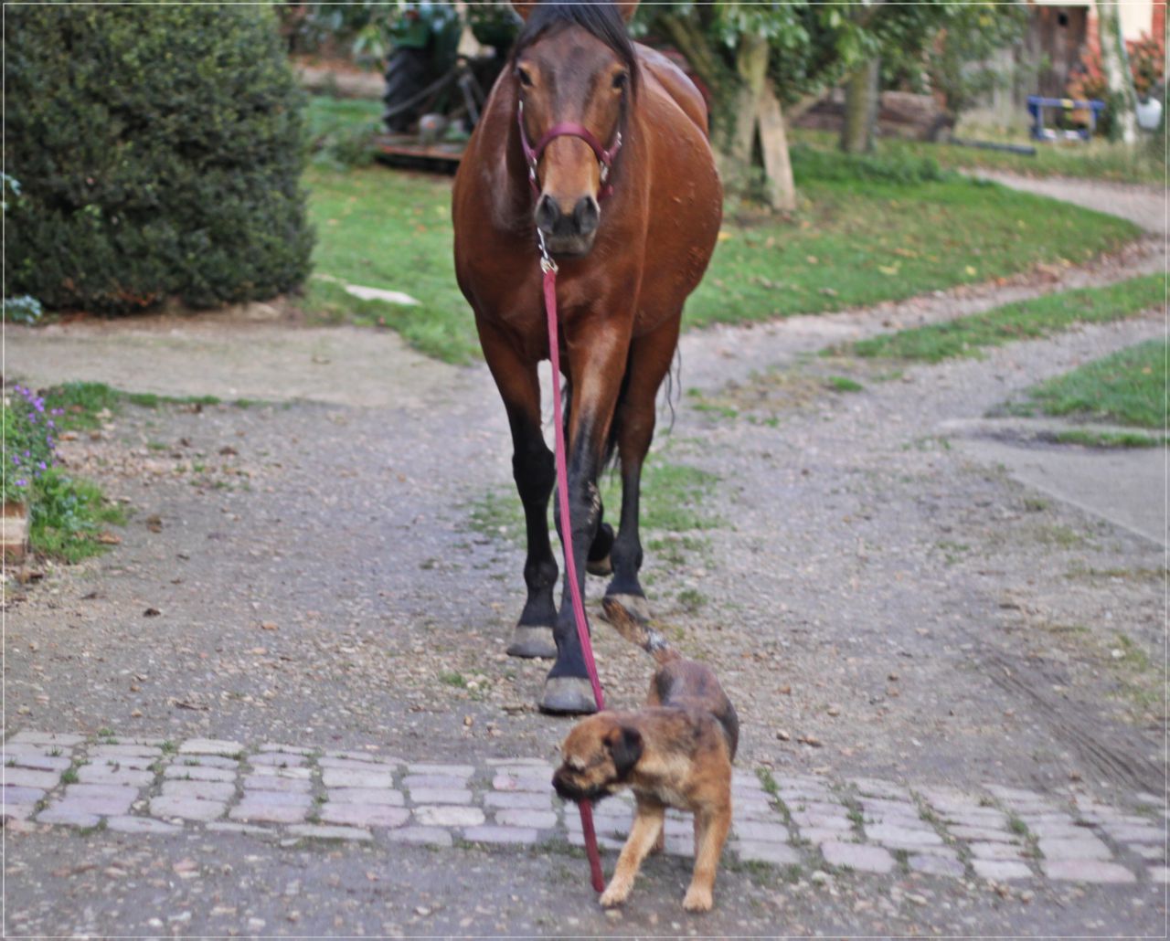 | Dire merci | Festival aussi est très "cavalier" comme cabot ![]() Il me ramène mon cheval du près au box et vice versa ! il est TROP fort ce toutou !! Et parfois lui et Sib se font des smack ! ! ![]() |