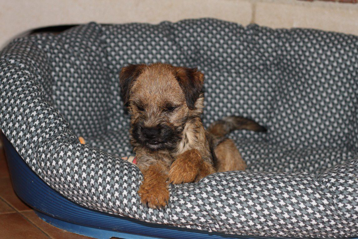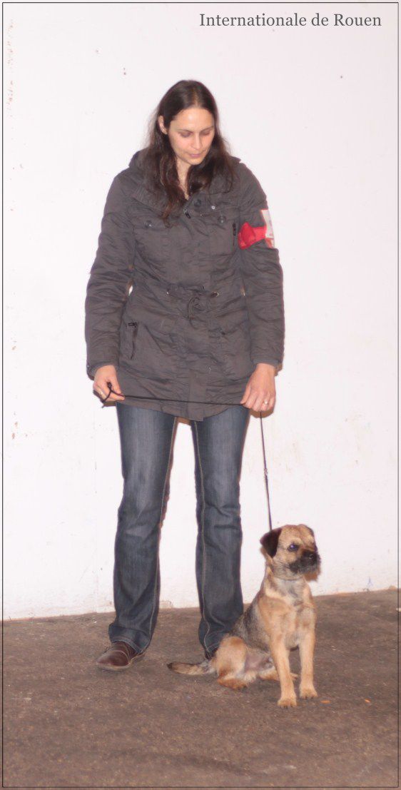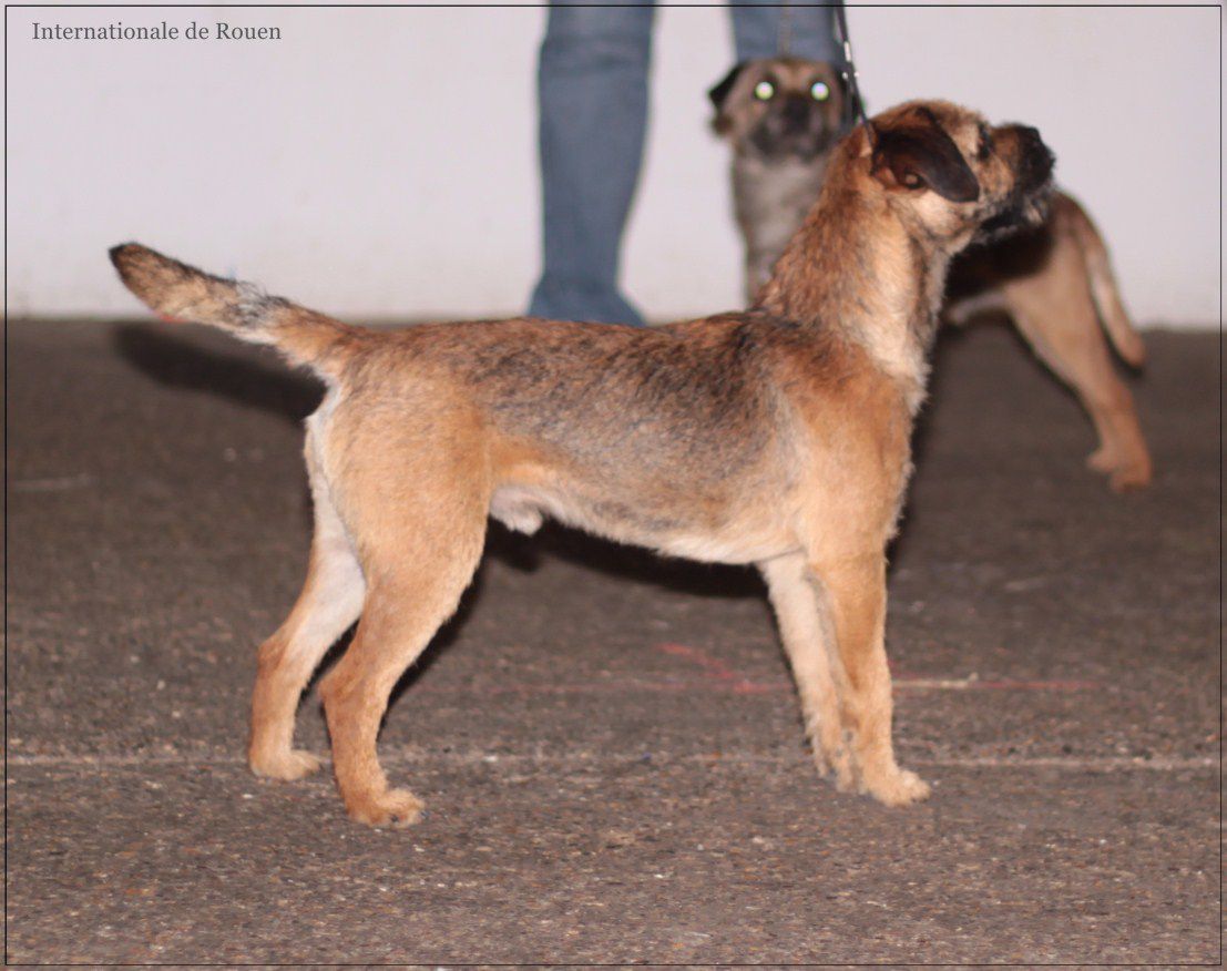 | Dire merci | (après le BA, les dobermans,...) Allez je lance ce post, à force de faire du hors sujet un peu partout. Je sais qu'il y a pas grand monde qui connait la race et qui en possède. On est déjà 2 sur le forum avec Pitch. Maevan, c'est pour quand ? Post fait pour une avalanche de photos, d'anecdotes, de résultats, de naissances....et pour tout savoir sur la race ![]() ![]() Le club de race Lien Alors voilou le standart STANDARD F.C.I.: n°10/ 27.04.1998 / F BORDER TERRIER. TRADUCTION: Prof. R. Triquet. ORIGINE: Grande Bretagne. DATE DE PUBLICATION DU STANDARD D'ORIGINE EN VIGUEUR: 24/06/1987 CLASSIFICATION F.C.I.: Groupe 3-Terriers Section 1- Terriers de grande et moyenne taille. UTILISATION: Terrier. Sans épreuve de travail. ASPECT GENERAL: essentiellement un terrier de travail. Capable de suivre un cheval. COMPORTEMENT/CARACTERE: Combinant activité et courage. TETE: La tête ressemble à celle d'une loutre. REGION CRANIENNE: Crâne: Modérément large. REGION FACIALE: Truffe: On préfère la truffe noire mais la truffe couleur foie ou chair ne constitue pas un défaut grave. Museau: Court et fort contre la joue. Mâchoires/Dents: articulé en ciseaux, c'est-à-dire que les incisives supérieures recouvrent les inférieures dans un contact étroit et sont implantées à l'aplomb dans les mâchoires. La denture juste (incisives bord à bord) est acceptable. Le prognathisme inférieur ou supérieur constitue un défaut majeur et doit être rejeté. Yeux: foncés, à l'expression vive. Oreilles: petites, en forme de V. Elles sont modérément épaisses et tombent vers l'avant tout. COU: de longueur modérée. CORPS: Haut, étroit et assez long. Rein: Fort. Poitrine: Côtes bien cerclées vers l'arrière du thorax mais pas en plein cintre, les deux mains devant pouvoir faire le tour d'un Border Terrier saisi par les épaules. QUEUE: modérément courte et assez épaisse à la base, elle va ensuite en s'amenuisant. Elle est attachée haut et portée gaiement mais pas recourbée sur le dos. MEMBRES: Membres anterieurs Droits; leur ossature n'est pas trop lourde. Membres posterieurs: bien profilés. PIEDS: petits, les coussinets sont épais. ALLURES: allures dégagées permettant de suivre un cheval. PEAU: Epaisse. ROBE: Poil: le poil est dur et dense et le sous-poil serré. Couleur: rouge, froment, grisonné et feu ou bleu et feu. POIDS: Mâles: entre 13 et 15,5 livres anglaises (5,9kg et 7,1kg). Femelles: entre 11,5 et 14 livres anglaise (5,1kg et 6,4kg). DEFAUTS: tout écart par rapport à ce qui précède doit être considéré comme un défaut qui sera pénalisé en fonction de sa gravité et de ses conséquences sur l'aptitude des terriers au travail. N.B.: Les mâles doivent avoir deux testicules d'apparence normale complètement descendus dans le scrotum. |