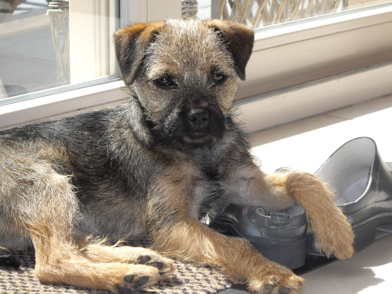 | Dire merci | (après le BA, les dobermans,...) Allez je lance ce post, à force de faire du hors sujet un peu partout. Je sais qu'il y a pas grand monde qui connait la race et qui en possède. On est déjà 2 sur le forum avec Pitch. Maevan, c'est pour quand ? Post fait pour une avalanche de photos, d'anecdotes, de résultats, de naissances....et pour tout savoir sur la race ![]() ![]() Le club de race Lien Alors voilou le standart STANDARD F.C.I.: n°10/ 27.04.1998 / F BORDER TERRIER. TRADUCTION: Prof. R. Triquet. ORIGINE: Grande Bretagne. DATE DE PUBLICATION DU STANDARD D'ORIGINE EN VIGUEUR: 24/06/1987 CLASSIFICATION F.C.I.: Groupe 3-Terriers Section 1- Terriers de grande et moyenne taille. UTILISATION: Terrier. Sans épreuve de travail. ASPECT GENERAL: essentiellement un terrier de travail. Capable de suivre un cheval. COMPORTEMENT/CARACTERE: Combinant activité et courage. TETE: La tête ressemble à celle d'une loutre. REGION CRANIENNE: Crâne: Modérément large. REGION FACIALE: Truffe: On préfère la truffe noire mais la truffe couleur foie ou chair ne constitue pas un défaut grave. Museau: Court et fort contre la joue. Mâchoires/Dents: articulé en ciseaux, c'est-à-dire que les incisives supérieures recouvrent les inférieures dans un contact étroit et sont implantées à l'aplomb dans les mâchoires. La denture juste (incisives bord à bord) est acceptable. Le prognathisme inférieur ou supérieur constitue un défaut majeur et doit être rejeté. Yeux: foncés, à l'expression vive. Oreilles: petites, en forme de V. Elles sont modérément épaisses et tombent vers l'avant tout. COU: de longueur modérée. CORPS: Haut, étroit et assez long. Rein: Fort. Poitrine: Côtes bien cerclées vers l'arrière du thorax mais pas en plein cintre, les deux mains devant pouvoir faire le tour d'un Border Terrier saisi par les épaules. QUEUE: modérément courte et assez épaisse à la base, elle va ensuite en s'amenuisant. Elle est attachée haut et portée gaiement mais pas recourbée sur le dos. MEMBRES: Membres anterieurs Droits; leur ossature n'est pas trop lourde. Membres posterieurs: bien profilés. PIEDS: petits, les coussinets sont épais. ALLURES: allures dégagées permettant de suivre un cheval. PEAU: Epaisse. ROBE: Poil: le poil est dur et dense et le sous-poil serré. Couleur: rouge, froment, grisonné et feu ou bleu et feu. POIDS: Mâles: entre 13 et 15,5 livres anglaises (5,9kg et 7,1kg). Femelles: entre 11,5 et 14 livres anglaise (5,1kg et 6,4kg). DEFAUTS: tout écart par rapport à ce qui précède doit être considéré comme un défaut qui sera pénalisé en fonction de sa gravité et de ses conséquences sur l'aptitude des terriers au travail. N.B.: Les mâles doivent avoir deux testicules d'apparence normale complètement descendus dans le scrotum. |
