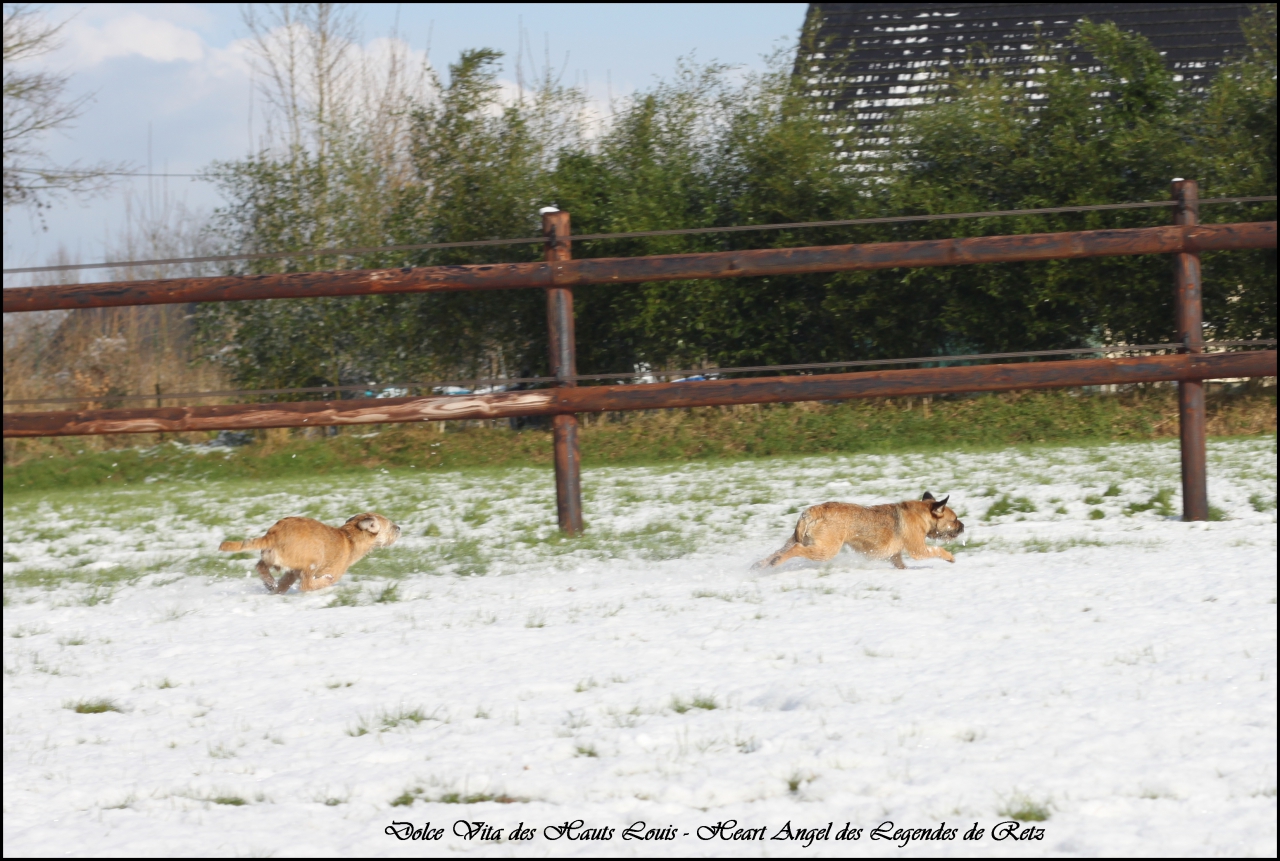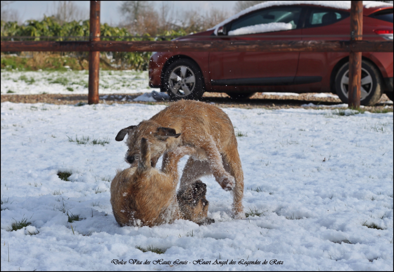 | Dire merci | Hello les bordermaniacs ! Histoire de faire remonter le post quelques jolies photos du peu de neige qu'on à eu (une journée) la semaine dernière. Le trio se porte bien , et même trèès très bien , je suis passée en fin d'année au croquettes SANS céréales , j'ai essayé plusieurs marques : Nutrivia nature - TOTW-PLATINUM pour en fin de compte rester sur celle ci que les chiens raffolent , mon portefeuille un peu moins ![]() Et j'ai pu constater que Dolce Vita qui était atteinte de grattage intempestif aux pattes + odeur coporelle très forte , peau qui graisse n'a plus AUCUN symptômes depuis ! J'attends de voir aussi si les otites ont disparu ce qui serait formidable !! Ici le gros chouchou toujours en forme , trop parfois !! ![]() ![]() petite Angel toujours aussi mignonne et au taquet aussi !! ![]() Festival qui tolère un peu mieux la promiscuité avec Angel , par rapport au début ou il ne la toléré pas dans son périmètre sans faire la gueule ou grognaçait dès qu'elle l'approchait à moins de 10mètres Ce week end pour la 1ere fois ils ont même joué tout les 2 !!!! A l'initiative de M. bougon qui même Angel n'en revenait pas !!! (habituellement il ne joue qu'avec Dolce ou seul avec ses jouets ) ![]() le trio réunit ![]() *** |