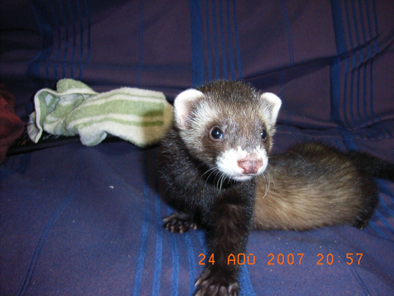 | Dire merci | Je viens d'accueillir un fureton de 2,5 mois, il s'appelle Cosmos " alt="" />Precisement, il est arrive le 18 aout... depuis il a pris 200g ! C'est un morfalou energique , d'ailleur je voudrais bien des conseils sur la maniere de prendre des photos parce que le temps d'appuyer il est deja a l'autre bout de la piece ! |