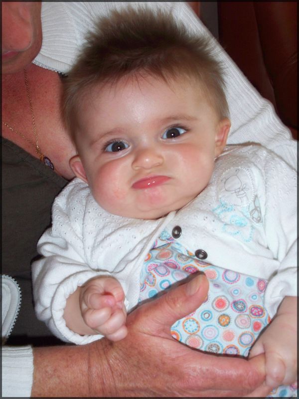 | Dire merci | Olly, ta fille est hyper expressive je trouve, je suis fan ! C'est bien si tu as trouvé la solution pour ses fesses, elle doit être soulagée ![]() Lee, ils ont encore bien changé je trouve ! ![]() Anatole se découvre une bouille de canaille, et Léonore se met à jouer les petites filles modèles on dirait !!! Et ces cheveux !!!! Mais tu leur mets de l'engrais sur la tête pour qu'ils aient une touffe pareille !!! Sinon Coline en ce moment, je m'abstiens de faire des photos, elle a chopé un virus, elle a plein de boutons rouges partout et notamment sur la tête la pauvre puce... Avec en plus des poussées de fièvre, vive le doliprane... ![]() Selon le pédiatre c'est pas grave, faut juste attendre, mais en attendant elle ronchonne... Heureusement qu'il y a la compote de poire pour la mettre de bonne humeur ! ![]() |