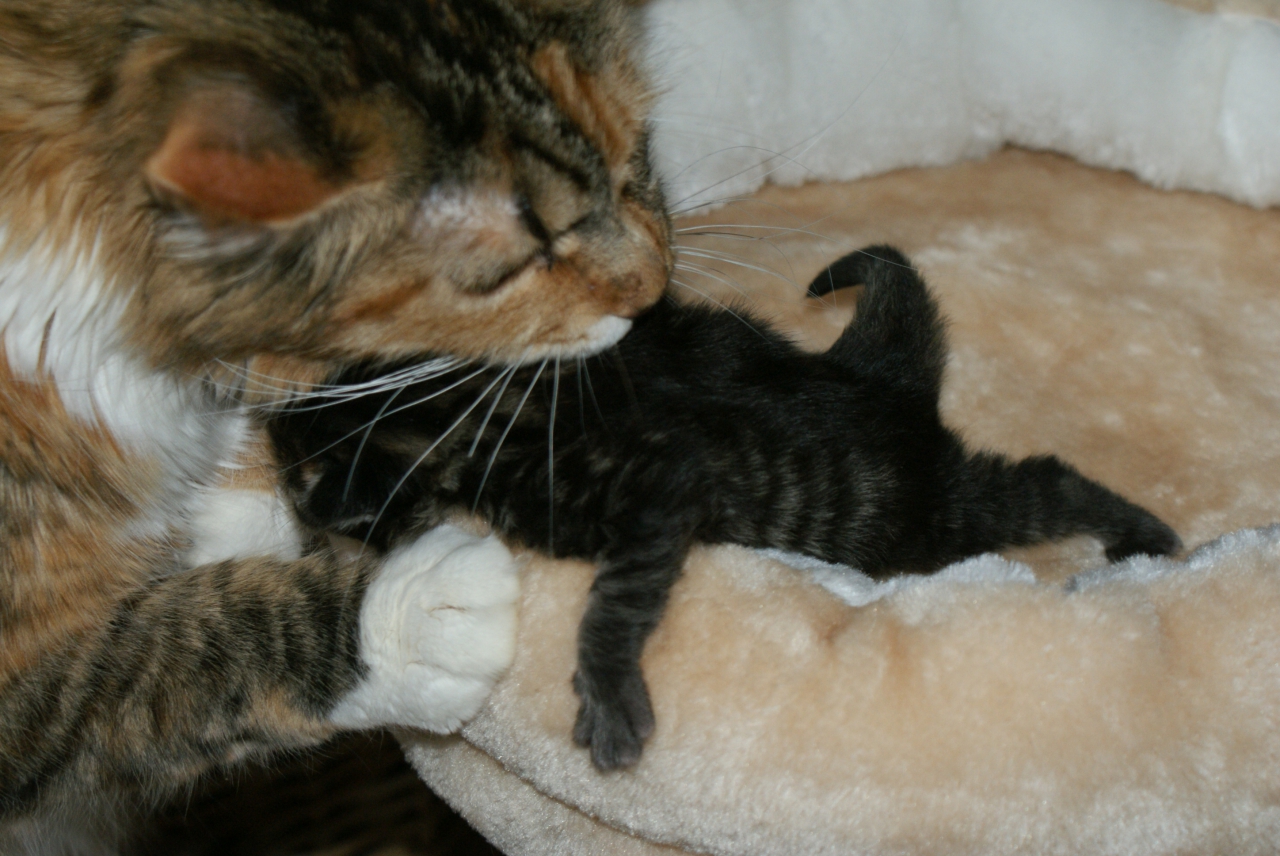 | Dire merci | Pourquoi j'ai choisi Harley du Fairy Coon Parce que il a une fourrure extraordinaire , une queue gigantesque et épaisse à faire rêver , et des tips superbes . Un profil parfait , droit avancé , une démarche de félin sauvage , un ronronnement d'avion qui décolle , bref , j'en suis tombée amoureuse et Bella aussi . Déjà petits , c'est drôle de voir leur museaux si semblable à celui d'Harley ![]() |
