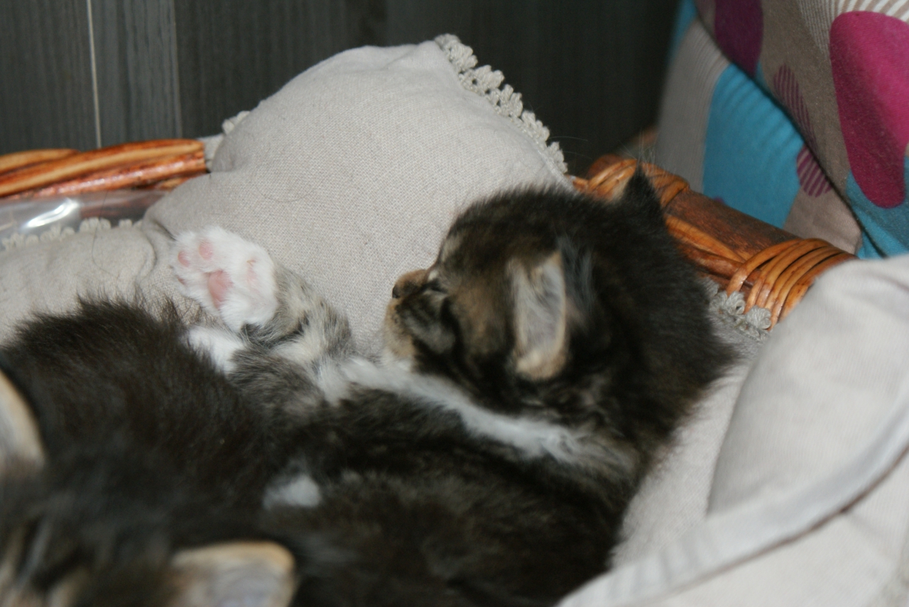 | Dire merci | La maman et la fille créent une élévage de Maine Coon , elles ont trouvé 3 petites MC belles comme des cœurs !!! et ................ Mon superbe BB Jared , le gros câlinou tranquillou sera le mâle reproducteur de cet élevage très prometteur !!! ses 3 futures chéries sont belles à couper le souffle !!!! Veinard !! Jared est rebaptisé JON SNOW !!! ![]() |