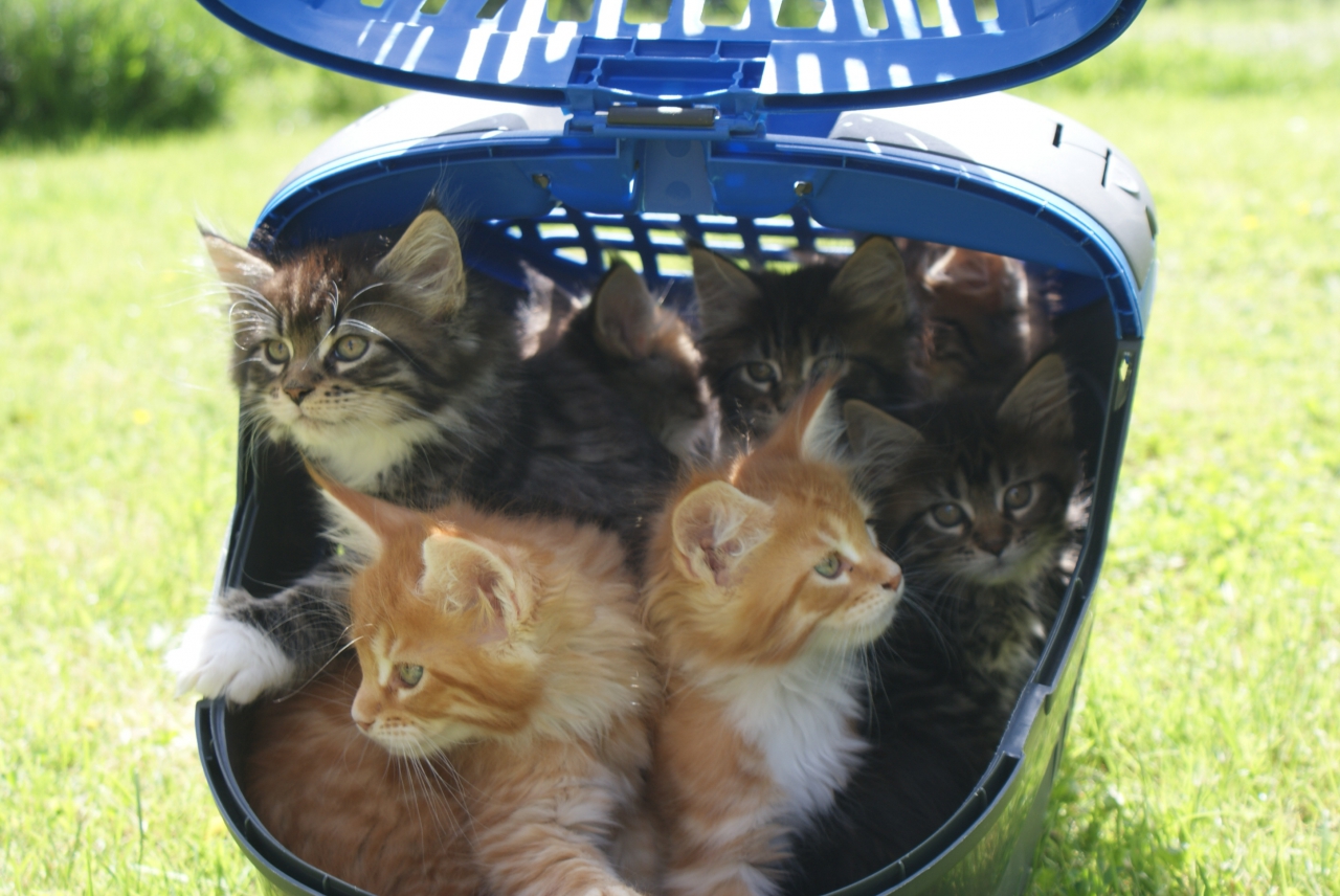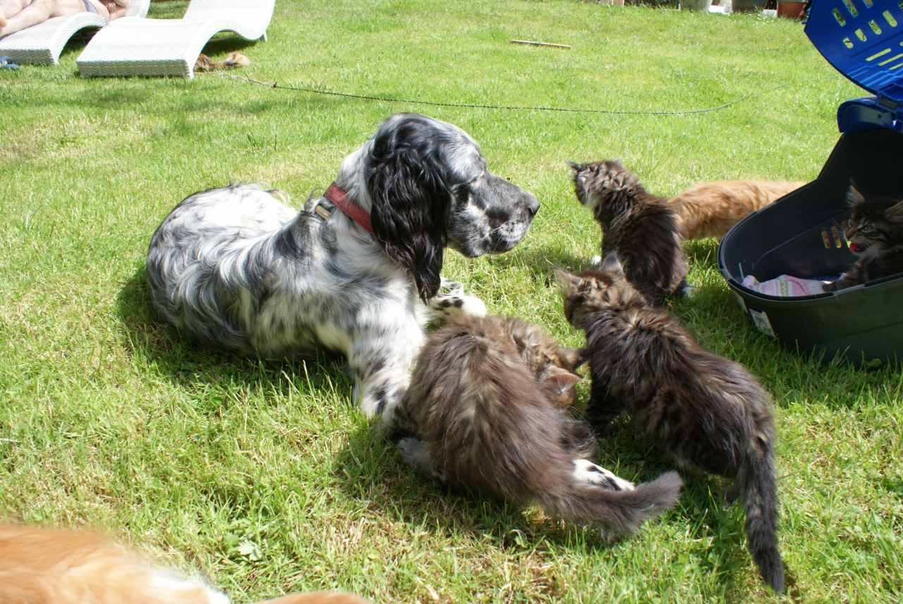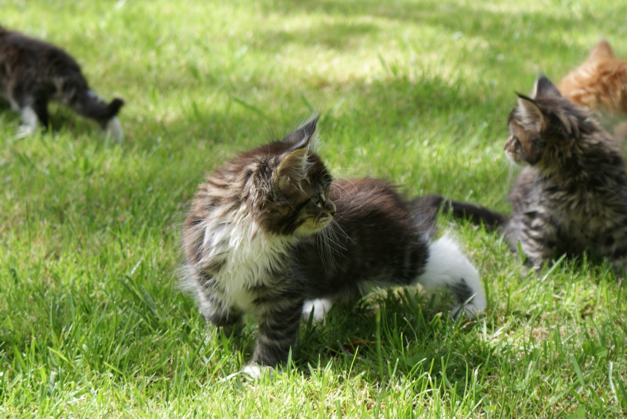 | Dire merci | Le Maine coon .................c'est un chat EXTRAORDINAIRE !!!!!! Mercredi Bella sera stérilisée . Mes BB ont eu leur vaccin et leur puce aujourd'hui ils ont tous été très sages Même chatons , ils sont hors norme ! Ma véto qui n'a que les miens en MC est scotchée !!!! Ils sont sages , ne mettent pas les griffes rien des perles |