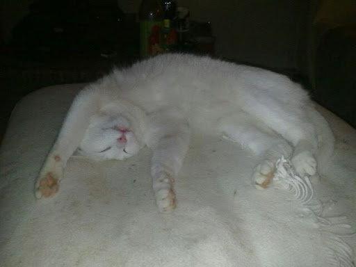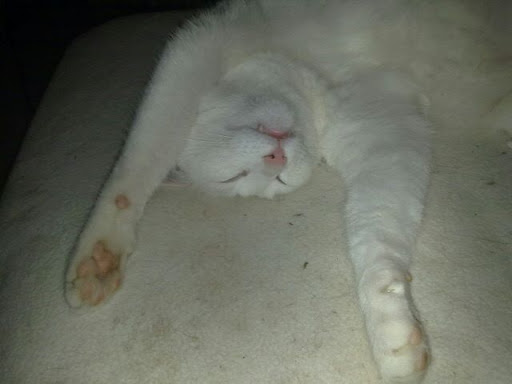 Déconnecté | pour le moment elle s'installe confortablement en haut de l'escalier (sans contremarche) et regarde ce qu'il se passe dans le salon, elle miaule de temps en temps pour réclamer une caresse mais elle reste planquée la ![]() |