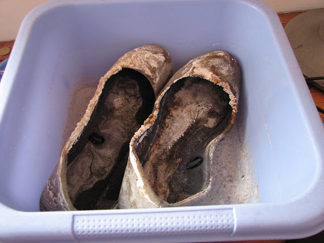 | Dire merci | allez, il est temps de lever le mystère... et oui, c'était bien des ballerines dans la bassine bleue! ![]() sachant que fin janvier qd mon chéri est revenu sur toulouse, c'était déjà en train de moisir dans la salle de bain, et il lui a foutu sous le nez en lui disant: nettoie vite fait ce truc, ça pue! bon, ben maintenant, ça ne pue plus trop, ça a séché |