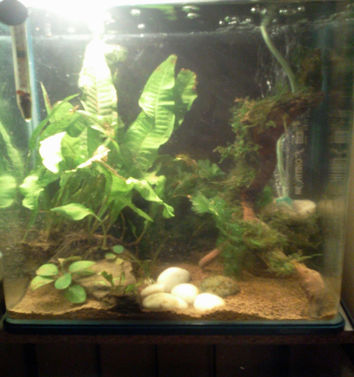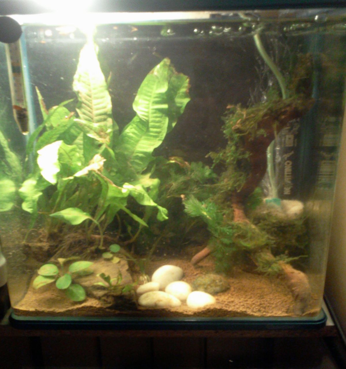 | Dire merci | bonjour, je me decide a participer au post pour presenter mon bac. aquariophile pdt 10ans, j'ai tout arrete en vendu ma fish room en 2010. a noel le virus m'a reprit, mais plus du tout envie d'y consacrer de l'argent et autant de temps! du coup je decide de ressortir le sel bac conservé dans la cave : mon 17L le fil de ce bac etait qu'il soit simple d'entretien, pas de gros investissement financier!!! avec a terme que quelques varietes de plantes mais qui englobent l'espace. donc plantes simples; crypto, anubia, mousse de java. la population sera des red cherry. il est positionné dans mon entree ,sans soleil direct. j'ai donc gardé le substrat en place, remit un petit chauffe eau,lampe de 20W, et fabrique un filtre venturi avec un bulleur. (plus confiance en mon filtre suspendu qui m'a broye mes dernieres red cherry )il est en eau depuis le 4janvier. au pic de nitrites j'ai subit l'envahissement d'algues brunes. dans la continuité de mon idee, j'ai choisit de laisser le bac "a l'abandon" 2 mois et reduire l'eclairage pour qu'il se stabilise seul. ca a payé. cette semaine je m'y suis replongee, reamenagé les plantes et commence les apports nutritifs liquides (je me tate a installer une cloche a CO2 pour la suite). la je lui laisse encore un peu de temps pour se stabiliser, et que les plantes poussent afin d'avoir des cachettes. j'espere pouvoir introduire une dizaine de RC en mai! ![]() je vous mets des photos de ce soir (il faut garder en tete qu'il est jeune, donc pas super sex hein) ![]() ![]() ![]() ![]() ![]() |