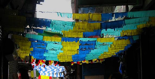 | Dire merci | En avançant dans ce bazaar je me rends compte d’une chose que j’avais essayée d’ignorer jusqu’à présent : c’est le début de la Coupe du Monde, aucun doute ! Des drapeaux, absents la semaine dernière, fleurissent un peu partout dans la ville, aux portes des maisons, à l’entrée des magasins, sur les voitures, etc. Je me mets donc en tête de chercher un drapeau français, car Yoguesh me tanne pour que je mette un maillot de l’équipe de France les soirs de match… Malheureusement, aucun drapeau français en vue ! Je trouve à foison de drapeaux allemands, anglais, brésiliens, argentins (???), espagnols et même italiens, mais français, zéro… Cela dit, dans Chowk bazaar, ne pas trouver le drapeau de son choix n’est pas un gros problème car vous pouvez tout simplement le faire faire par un des nombreux tailleurs du coin. Sitôt dit sitôt fait, je me renseigne discrètement sur les prix pratiqués (car les européens voient les prix systématiquement doubler par rapport aux Indiens), ouf, on me propose le même prix qu’à 2 dames indiennes. Va pour 60 roupies (1,20€) le drapeau de taille moyenne (50 x 75 cm environ). Seulement nouveau problème : ils n’ont pas le bleu du drapeau français en stock. Je me vois proposer les bleus argentins (trop clair) ou brésiliens (trop foncé) à la place. Mais encore une fois, la magie indienne fait son effet…Avec un grand sourire et l’air néanmoins déterminé, il n’est pas difficile de convaincre le tailleur d’aller, avec vous bien sur, chercher directement le tissu auprès du marchand de tissu, à 50m de là. Les premiers marchands n’auront pas la couleur bleu roi, mais le 3e nous proposera un bleu se rapprochant beaucoup du bleu que je recherche, à très peu de chose près c’est le même. Allez, vendu, « revenez dans une heure Mademoiselle, ce sera prêt ». En attendant, je vais sillonner la ville, à la recherche de 2 magasins cités dans le Lonely Planet (livre que je recommande fortement de se procurer avant de partir en Inde, pour Darjeeling et Kalimpong du moins, c’est une mine de (très bons) renseignements !), le Life&Leaf Fare Trade Shop et le Nathmull’s Tea Room. Je ne sais pas trop où je suis, qu’importe, se balader dans les ruelles de Darjeeling est une expérience très agréable et dont on ne se lasse pas. Quelques photos en chemin Une « clinique » vétérinaire Les Indiens ont l’habitude de porter leurs charges lourdes ainsi… Original, mais est-ce bon à long terme pour les cervicales ? ![]() Une « clinique » vétérinaire Les Indiens ont l’habitude de porter leurs charges lourdes ainsi… Original, mais est-ce bon à long terme pour les cervicales ? ![]() ![]() Des petits en-cas sur le chemin de Chowrasta : ce sont des sortes de « coquilles » de pâte que l’on perce sous vos yeux pour les remplir d’une farce en y ajoutant un bouillon. Pas mauvais, je dois dire, mais la fois où on m’en a fait goûter à Kalimpong, je n’étais pas tranquille… [img]http://lh4.ggpht.com/_DlBW3NTTNkg/TBPM8_9VKgI/AAAAAAAACyQ/lK6_3IJHAno/s512/IMG_1310.JPG" alt="" /> *suite et fin* |