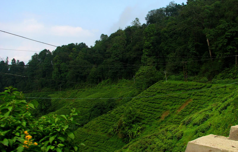 | Dire merci | Arrivée au fameux Nathmull’s, je me rends (malheureusement) compte d’une chose : je n’y connais strictement rien en thés ! Mais point de crainte en ce lieu : vous serez reçu par le patron en personne, issu de la famille ayant ouvert cette boutique en 1931…Autant dire qu’ils sont au thé ce que sont les plus fins œnologues au vin ! Et j’ai eu droit à des dégustations de senteur (avec un procédé très particulier pour faire ressortir les arômes des feuilles de thé, dans les mains), du « cru moyen » jusqu’au « Grand Cru Classé ». Je ressortirai du magasin avec 2 sachets de thé, que je ne détaillerai pas, car une certaine lectrice (coucou maman !) ne doit pas savoir où j’ai acheté « le » meilleur thé du monde. (Je suis allée dans d’autres magasins de thé après, sur conseils du Dr Pandey de Kalimpong, donc j’ai une dizaine de thés à faire déguster à ma goûteuse de thé attitrée !) L’heure de rentrer arrive tout doucement, je vais donc chercher mon joli drapeau français chez le tailleur, la finition est vraiment très belle ! Puis je retourne sur Hill Cart Road (la rue qui traverse Chowk bazaar, et également l’artère principale de Darjeeling) pour prendre un taxi collectif pour Lebong… Cette fois-ci j’ai pu compter, nous sommes rentrés à 17 dans (et sur) la voiture ! Au fait, savez-vous pourquoi j’ai appelé mon titre ainsi ? Car Darjeeling, en tibétain signifie : le pays de la foudre. On octroie deux origines au nom de cette ville. Celle décrite précédemment et une colline au dessus de Chowrasta, Observatory Hill, colline sacrée pour les bouddhistes et les hindouistes où se dressait jadis le Dorje Ling, le gompa (temple) qui donna son nom à la ville. (merci Lonely Planet !) |