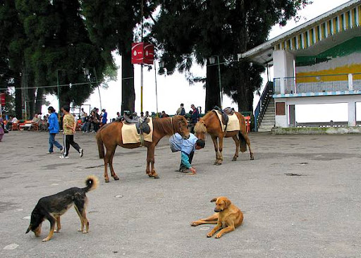 | Dire merci | (est ce que l'article du 14 est mis sur mon blog? j'arrive pas à y accéder )article du jour, tout frais ![]() 15.06.01 15 juin 2010, début de la mousson ? La journée s’annonçait tranquille : quelques stérilisations le matin, déjeuner en ville puis promenade dans les rues de Darjeeling… La matinée fut effectivement calme, trop calme… Sans nouvelles de la petite vache d’hier (il est assez courant ici que le vétérinaire ne soit pas tenu au courant de l’évolution si l’état de l’animal ne se dégrade pas… on applique donc le « pas de nouvelles, bonnes nouvelles » ), sans animaux à stériliser car les employés avaient du partir très loin et ne sont revenus qu’à midi... bref, la matinée s’annonçait bien vide. Heureusement deux propriétaires nous ont ramené leurs animaux à stériliser, une chatte (que j’ai faite) et une chienne Berger Allemand, que Yoguesh a faite. Juste avant d’entamer ces (maigres) chirurgies, Yoguesh m’apprend que le chien suspect de rage (bavait, était agressif, symptômes neurologiques, bref, le tableau clinique parfait) qui avait été ramené hier par ses propriétaires est mort dans la nuit dans sa cage. Donc rage très probable. Heureusement les personnes qu’il a mordues (ses propriétaires) sont déjà allées hier à l’hôpital et vont être prises en charge correctement. Seulement deux des chiens du refuge, Tigbee et Bailey, ont voulu « jouer » avec lui hier soir à travers les barreaux de sa cage. Dans le doute, nous leur avions fait à chacun un rappel anticipé. Mais n’empêche que ce genre d’histoire rappelle amèrement que la rage n’est de loin pas éradiquée ici, et qu’il y a encore beaucoup de progrès à faire. Le chien en question était un chien de propriétaire, qui s’est fait mordre par un chien errant, et dont malheureusement le dernier rappel antirabique remontait à 2 ans et demi… Comme quoi la vaccination annuelle contre la rage en zone suspecte, c’est pas simplement pour faire joli sur le papier. Ce triste incident et les chirurgies terminés, nous nous préparons pour partir en ville. J’emmène mon gros sac à dos avec tout ce que j’ai acheté depuis le début, pour tout envoyer à ma famille. Manque de bol, il se met à pleuvoir des cordes…Yoguesh me dit en riant qu’il espère pour moi que ce n’est pas le début de la mousson, sinon l’aprèm sera fichue…hé ben si, c’était bien le début de la mousson. Alors la mousson, comment dire… J’avoue que j’avais du mal au début à m’imaginer des pluies torrentielles, comme on n’en voit que dans les films (ou chez nous durant une période très courte, mais ça ne dure que quelques minutes en général), et d’ailleurs j’ai toujours été persuadée que dans les films ils exagéraient les quantités d’eau tombant du ciel…. Si j’avais su ! Le mot « torrentielles » s’applique effectivement très bien à ces pluies, car des torrents, il en surgit de partout : les caniveaux (heureusement bien profonds) deviennent de véritables ruisseaux en furie, les gouttières s’arrêtant à mi-hauteur déversent des litres et des litres d’eau qui éclaboussent tout à plusieurs mètres à la ronde… Impossible de faire 10 mètres sans être trempé jusqu’aux os. Nous prenons donc un taxi, qui vient nous chercher devant le refuge, pour aller au centre ville. Le petit truc rigolo de la journée, c’est que ce taxi était tellement peu puissant qu’il a du s’y reprendre à plusieurs fois, dans plusieurs montées, pour réussir à nous monter depuis le refuge jusqu’au centre de Lebong (après c’est relativement plat). Yoguesh a même du descendre de la voiture deux fois pour l’alléger, il était ravi de marcher sous cette pluie ! Le petit taxi finit néanmoins par nous emmener à bon port, à savoir un restaurant dans LadenLa Road, entre le Nathmulls et Hayden Hall. J’y découvre là le « vrai » chicken tandoori, qui, très honnêtement, ne casse pas trois pattes à un canard (normal pour du poulet, me direz-vous !), dans le sens où j’en ai mangé des similaires en France, avec une viande moins sèche cependant. Par contre, le plat de Yoguesh, qu’il m’a fait goûter (impossible de me souvenir du nom, mais c’était aussi du poulet, mais en lamelles, dans une sorte de purée aux lentilles, légèrement relevée), était vraiment délicieux ! J’ai également goûté le Lassi (non, c’est pas du chien, on n’est pas en Chine !), la boisson nationale parait-il, qui se révèle être un yaourt assez liquide, acide et sucré. Sympathique, et pas trop difficile à refaire je pense. |