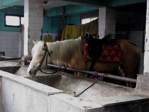 | Dire merci | (désolée, problèmes d'ordi, encore...) Ci-dessous, avec Peara, qui a bien mis 10 minutes à capituler, alors que son pote Mousken, le bai brûlé, n’a pas opposé de résistance. Néanmoins je ne pense pas que les poneys gardent un mauvais souvenir de cette vermifugation, car au final chacun a eu droit à un nan complet ! Au fur et à mesure que je « bataille » avec mes alezans, tous les soigneurs se pressent pour prendre un bolus et un nan pour vermifuger eux-mêmes leurs chevaux, ce qui fait que sur 14 poneys, j’ai du en vermifuger moi-même 6 ou 7 maximum. Ils se sont plutôt bien débrouillés, il n’y a guère que Pinki et Jamina (des alezans, encore une fois !) qui ont réussi à filouter et que j’ai du reprendre par derrière. Ces poneys ont d’ailleurs chacun un nom, je vais vous les donner un par un (sauf le palomino qui a été le premier et que j’ai répertorié sous « palomino »), les soigneurs étaient d’ailleurs très fiers de me dire le nom de « leur » poney : Les alezans : Péara (liste blanche), Tinka (crins lavés), Pinki, Jamina Les gris: Diamond, Sweety, Snow White, Tassi Les bais: Mousken (bai brun), Chiri, Black Beauty (bai brun très foncé), Jassi (dun), Don (bai brun) Une fois tous les poneys vermifugés et les nans engloutis (à la fin, manquant de nan, je me rabattais sur de l’herbe que je leur fourrais littéralement dans le bec, Jamina n’a pas spécialement apprécié cette « intrusion » !), les soigneurs sont venus me demander si je pouvais également examiner certains chevaux, notamment Jassi et le palomino car ils toussent. Si la toux de Jassi ne semble pas inquiétante (provient très probablement de l’appareil respiratoire supérieur et non déclenchable à la palpation), celle du petit palomino m’inquiète un peu plus, car après un simple aller retour au trot, il a eu une quinte de toux. Malheureusement, n’ayant pas de stéthoscope à ce moment-là sous la main, je ne peux rien faire d’autre. Je reviendrai donc demain avec le matériel approprié pour examiner ça dans la mesure du possible. Je leur propose enfin, au moment de partir, de leur apprendre quelques choses supplémentaires (par exemple le parage, il y en a vraiment besoin !), ils acceptent avec enthousiasme. Ce ne sera pas aisé étant donné qu’ils sont ferrés (très mal d’ailleurs, un cauchemar de maréchal !), mais ça sera toujours mieux que rien… Sur le chemin du retour (nous prenons un taxi collectif à Chowk bazaar, en contre-bas), je fais part de ma joie à Bidia (celle dont je cherchais le nom hier) et je lui demande pourquoi Yoguesh n’y est pas allé depuis 3 ans, puisqu’ils ont l’air tout de même très coopératifs pour la santé de leurs poneys. Bidia m’explique que leur attitude envers moi est totalement différente de celle qu’ils ont eue envers Yoguesh il y a 3 ans : si j’en crois son récit, ils l’ont complètement ignoré et n’ont écouté aucun de ses conseils, l’accueillant vraiment comme quelqu’un de dérangeant et « inutile ». Il est alors compréhensible que Yoguesh, qui avait déjà beaucoup de travail par ailleurs, ait renoncé à y retourner. Elle m’explique également que le fait que je sois étrangère, d’Europe, et (prétendument) spécialisée en équine joue énormément, d’après elle, c’est l’argument essentiel qui fait qu’ils m’écoutent et acceptent mon aide. Comme quoi, pour une fois, cela a du bon d’être une petite blonde en Inde ! |