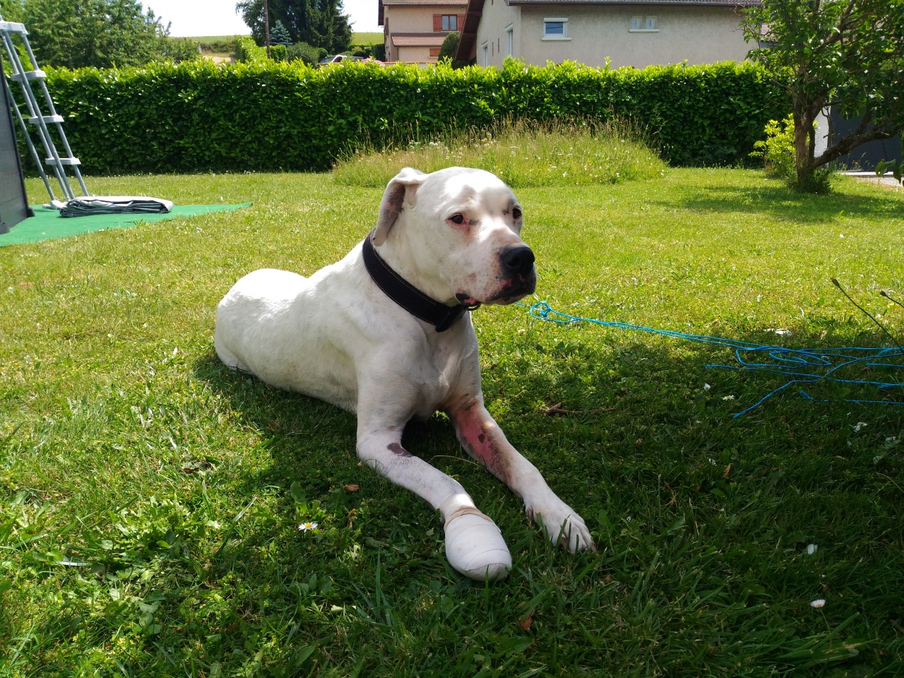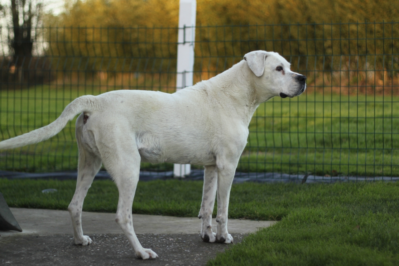 | Dire merci | 12? Bel âge pour un dogo! La mienne a 6 ans et va bien! Nous lui avons retiré une masse sous mandibulaire dont on ne connaît pas la gravité malgré l analyse.. Mais sinon tout roule! Tjs aussi adorable, sauf avec les petits chiens... Lol |