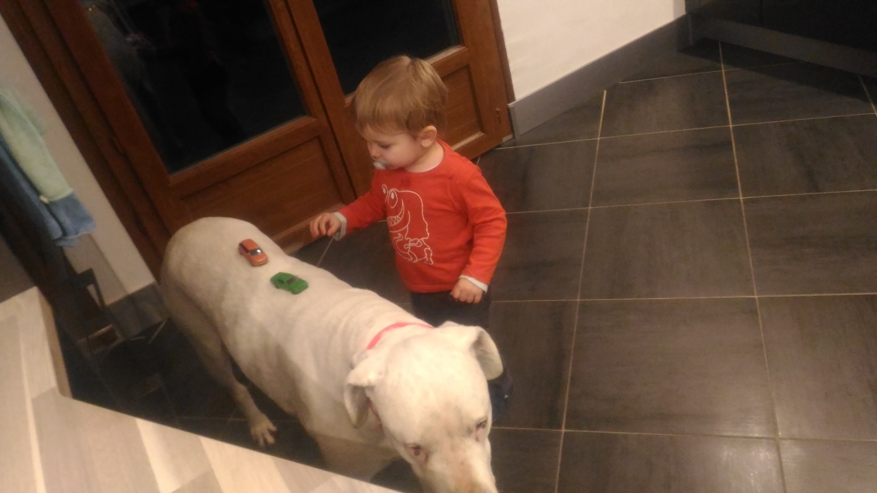 | Dire merci1 | Alors j'ai une doguette, un chat, un petit garçon d'un an et tout le monde cohabite très bien. Jaya protège ++ son petit maître. On rencontre d'ailleurs quelques soucis en balade lorsque je suis avec la poussette. Jaya défend et personne ne peut s'approcher. Mais à côté de ça, on fait des balades de groupe régulièrement et jaya est la bonne patte. Elle veut bien tout et accepte tout le monde. Question sportivité, il est clair que ça reste des chiens pantouflard qui adore le soleil et la chaleur du poêle. J'ai essayé le jogging avec jaya mais ça la saoule. Elle est 15 m derrière moi à traîner les pattes. Question alimentation, elle mange des croquettes purizon qui doit être à environ 50 euros les 12kg. Le dogo est un chien super attachant et très proche de sa famille. La bête ![]() ![]() |