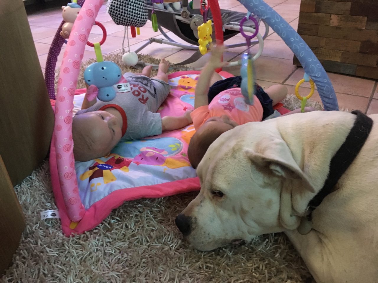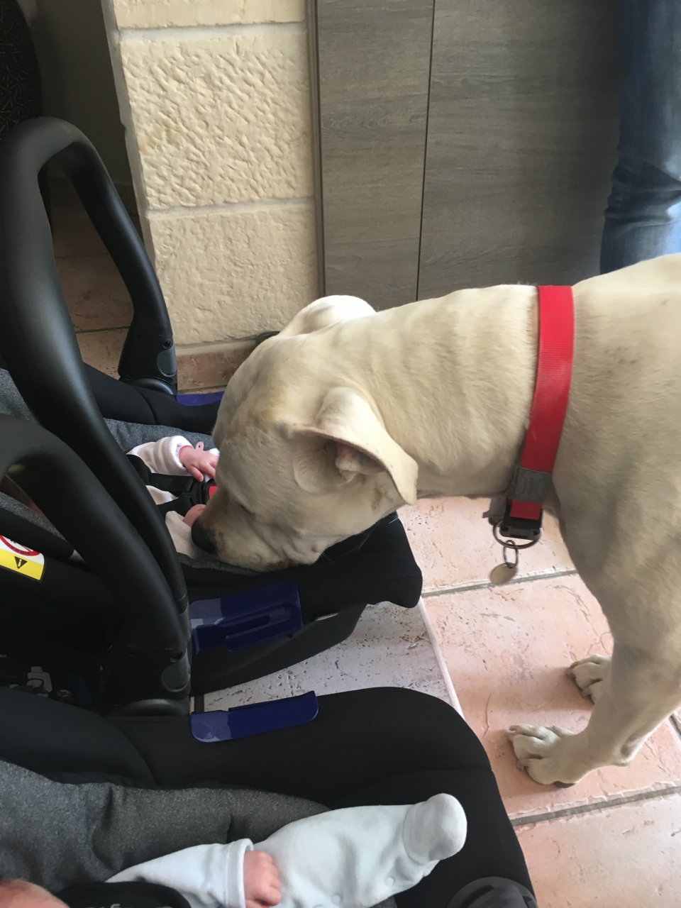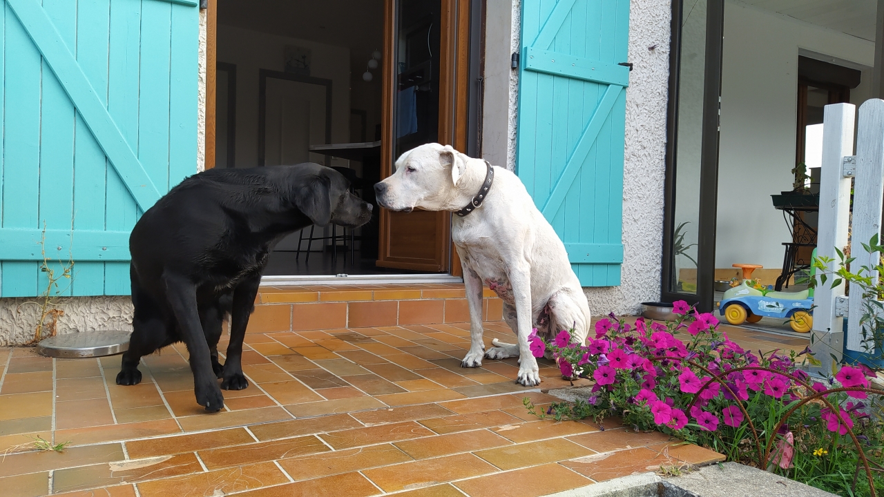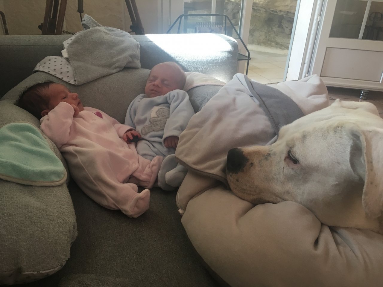 | Dire merci | alors moi j'ai un dogo de 6 ans maintenant. Une vraie patte, très sensible, déteste le froid et la pluie (est capable de se retenir d'aller pisser car il pleut), adore se larver au soleil. Traine la patte en footing mais adore les grandes balades où il peut flaner. Plus jeune, je l'ai eu "a l'usure" avec des balades très pêchues a cheval car a la maison il détruisait tout. Pourtant, une autre chienne qui jouait avec lui mais malgré tout pas assez de sport. Il a vécu avec le chat de la famille ses deux premières années et... il l'a buté. Juste un coup de croc. Il l'a pas déchiqueté rien, mais il est super susceptible et il n'aimait pas que le chat le souffle. Bah là il lui a fait son compte. Un choc terrible de retrouver mon chat raide sur la pelouse. Sinon j'ai deux jumeaux de 17 mois, c'est un amour, une grosse pantoufle qui se pose a coté et qui ne bouge plus. MAIS. Il n'était pas comme ça a 2 ans car beaucoup beaucoup beaucoup plus remuant. Clairement je n'aurais pas admis le dixieme de la proximité que j'ai accordé a mon chien avec les enfants. Après, c'était une période particulière, ma premiere chienne que l'on voit sur la photo était morte en janvier, il l'a très mal vécu, ensuite je suis partie a l'hôpital du jour au lendemain et il a fait une dépression (-10kg, rasait les murs etc...) et quand je suis revenue 3 mois après j'avais deux petites choses dans les bras. Alors on a fait le congés mater ensemble... et 1 mois avant la reprise du boulot, mon Oska (le kangal) est arrivée et ça a fait une transition parfaite. Itak a été une nounou parfaite avec les enfants, un monstre de douceur. Aujourd'hui les enfants ont 17 mois, la barrière est simple, les chiens n'approchent pas si je ne leur donne pas l'autorisation ET VICE VERSA! on ne va pas voir les chiens sans maman. Les chevaux non plus d'ailleurs. Avec les autres chiens males ca va beaucoup mieux mais jusqu'à 5 ans il déboitait tout ce qu'il voyait... ![]() 1 jour en rentrant de la mater : ![]() toujours un œil sur eux, il ne bougeait pas, une statue ![]() la première balade, il était là : ![]() toujours là : ![]() Puis un jour est arrivé cette petite crotte : ![]() ![]() ![]() enfin petite crotte, berger d'anatolie, qui maintenant le fait 2 fois et elle lui bouge son lard!! Bref, je l'adore mais... calcule bien ton coup. |