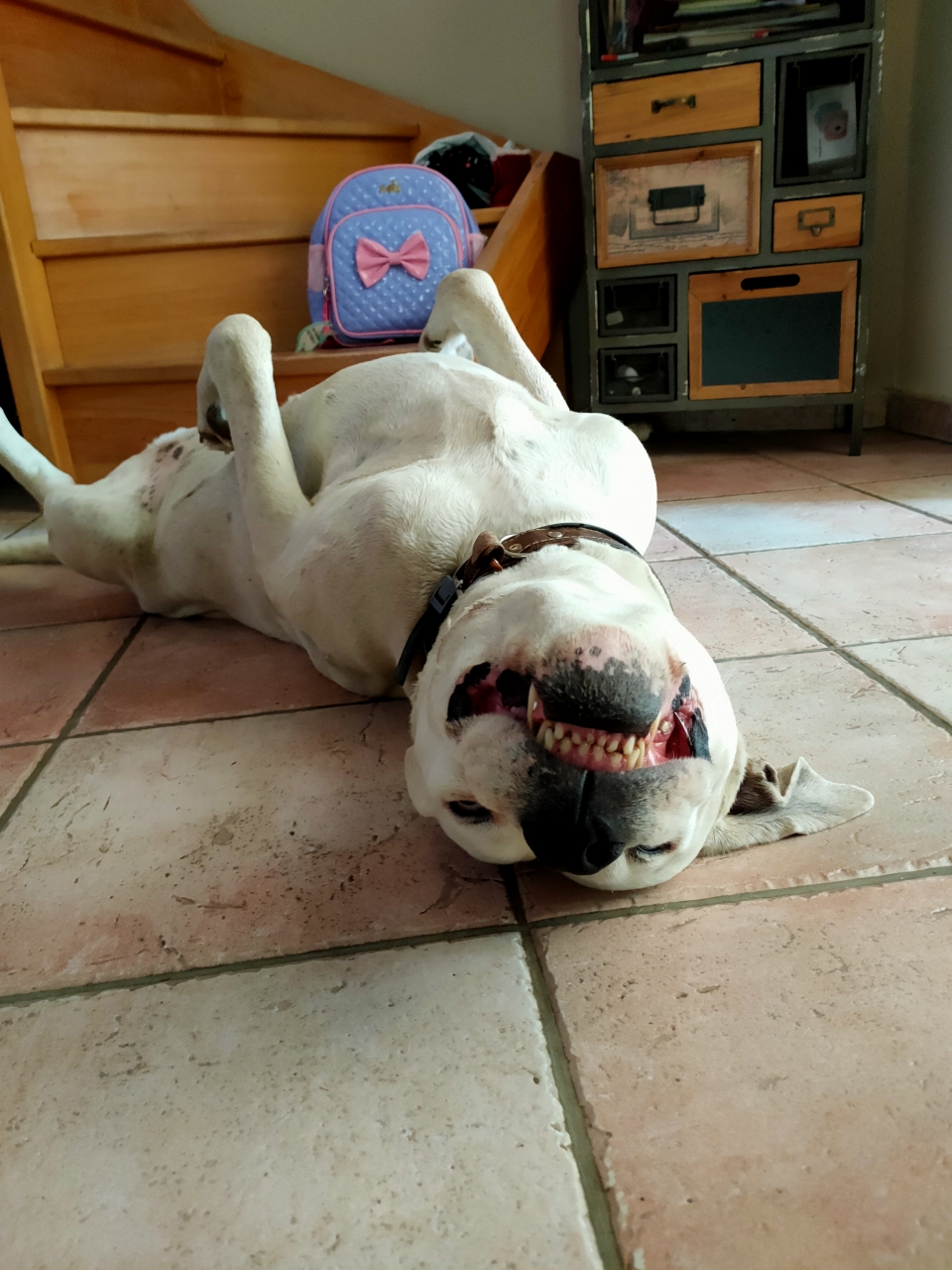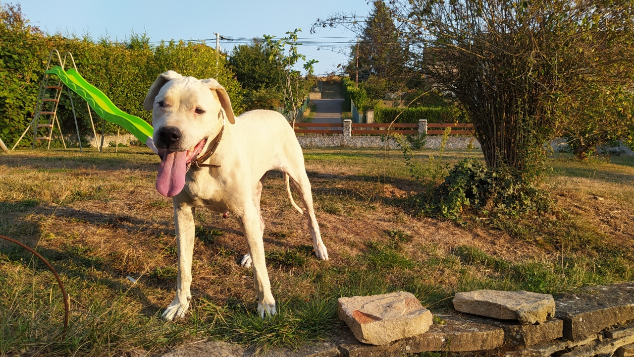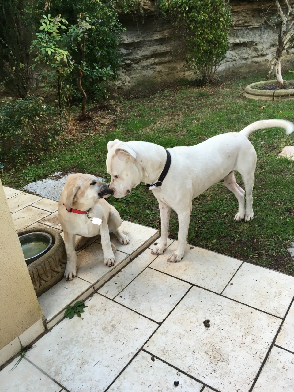 | Dire merci | Alors voilà : J'envisage l'acquisition (pas tout de suite non plus) d'un dogue argentin mais avant je voudrais être sur de pouvoir le rendre heureux, c'est pourquoi j'aurai besoin de quelques petits conseils : J'habite une petite maison avec une petite cours, je rentre à la maison le midi et le soir le chien sera constament avec moi quand je serai aux écuries, en jooging, en marche ... bref il aurai de l'activité tout les jours. Quel est le caractère de ce chien ? Pensez vous qu'il me conviendrai ?! Je vous remercie ! Bonne journée ! |