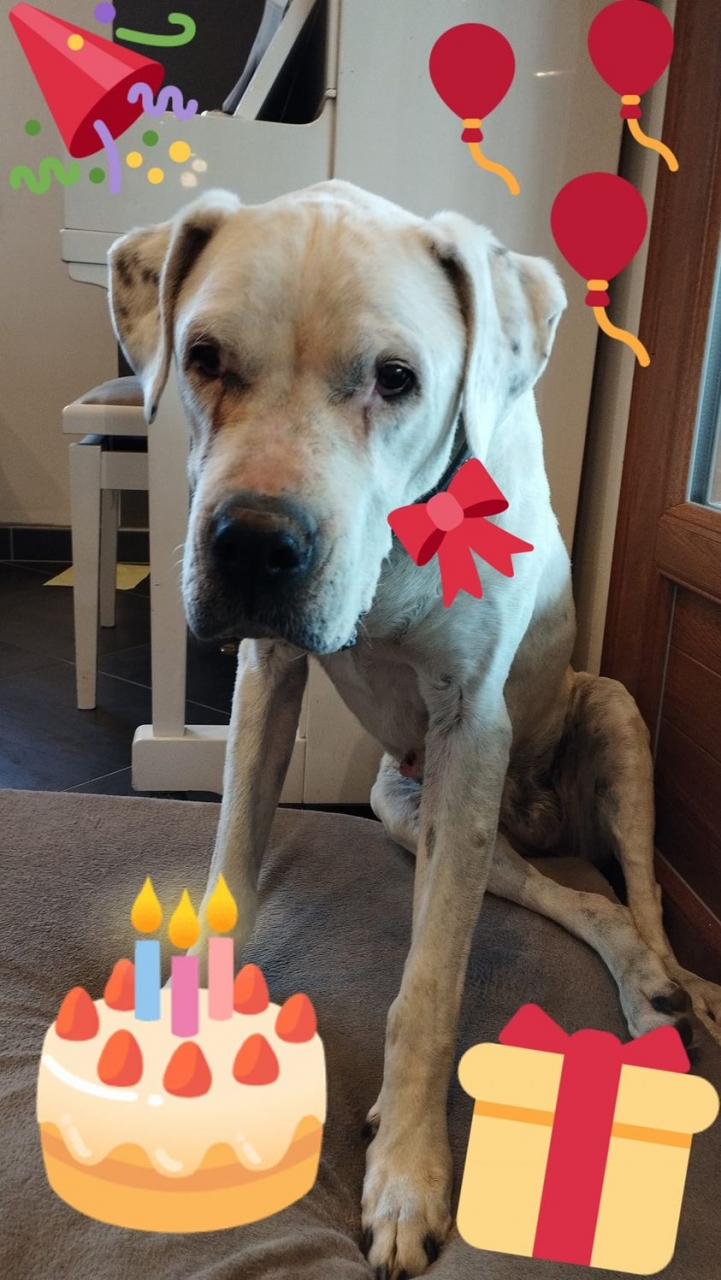 | Dire merci | @plush OOH la belle Dalli !! ça fait plaisir d'avoir de ses nouvelles !!! 14ans c'est trop beau !! Mes fifilles sont parti à 8 et 12ans, je penses souvent à elle ! Bientôt un staffie pour ma part car le dogo c'est trop gros pour moi désormais ... |