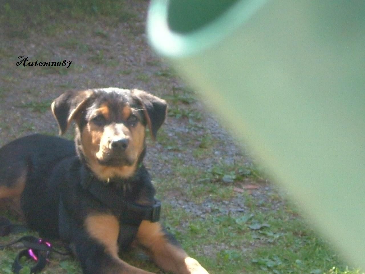 | Dire merci | Merci les filles, c'est fou comme on est sensible aux compliments qui concernent nos amours Donc Suela est de la meilleure race qui soit: une RIEN!!! Elevée à la ferme!Papa Horace : Rott croisé Montagne des pyrénées (MA-GNI-FIQUE!!! )Et Maman, trop divers pour tout dire. Son arrière grand-mère était une border (même pas pure...) |
