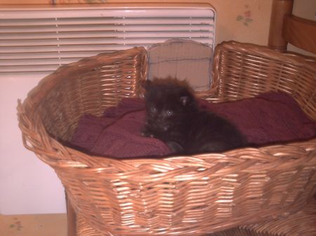 | Dire merci | eh bien, ce petit noir, est très demandé, tout le monde le veut, les 2 autres sont boudés. c'est joli les roux pourtant. l'autre chatte n'en a pas voulu. c'aurait été trop facile. bon j'attends de voir, c'est vraiment une chance qu'elle est encore du lait, les 3 chatons sont presque sevrés en fait, ils peuvent se passer d'elle, niveau propreté ils sont prets a etre placés, restent la sociabilisation. c'est pas si simple. c'est bizarre, ils se laisse prendre et papouillés, ils mangent dans ma main et me montent dessus mais ils restent assez farouches, j'espère que ce ne sera pas un frein aux futures familles. |