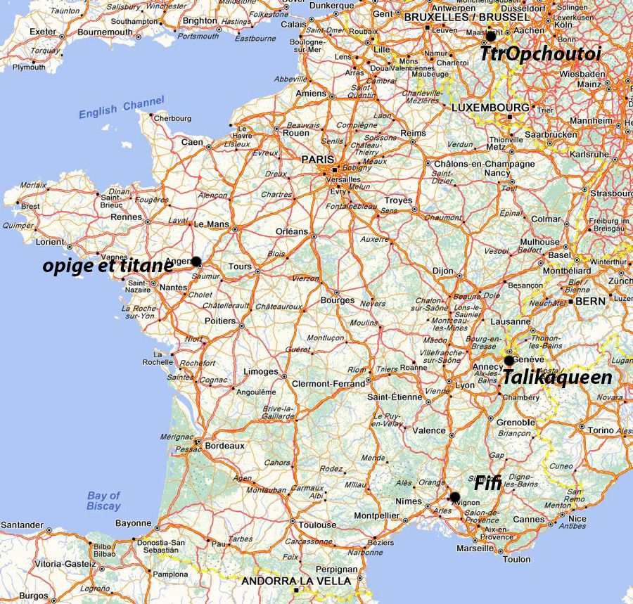 | Dire merci | Vous êtes où les filles? J'ai regardé sur la mappemonde ttr0pchoutoi Tu es en belgique près de Maastricht ? Titane Angers Opige On sait seulement Maine et Loire Fifi Avignon Talikaqueen Viuz en sallaz ( haute savoie ) J'ai oublié personne ? |