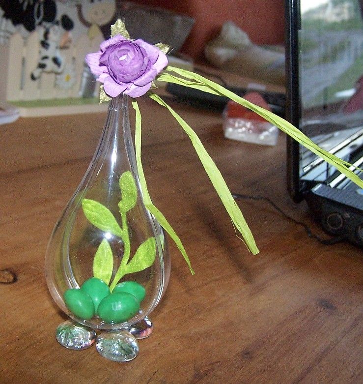 Déconnecté | Pour le mariage de ma belle-soeur, les enfants ont pour dragées des dragibus vert et marron (couleur du mariage), les hommes une petite fiole d'eau de vie et les femmes des dragées! ![]() |