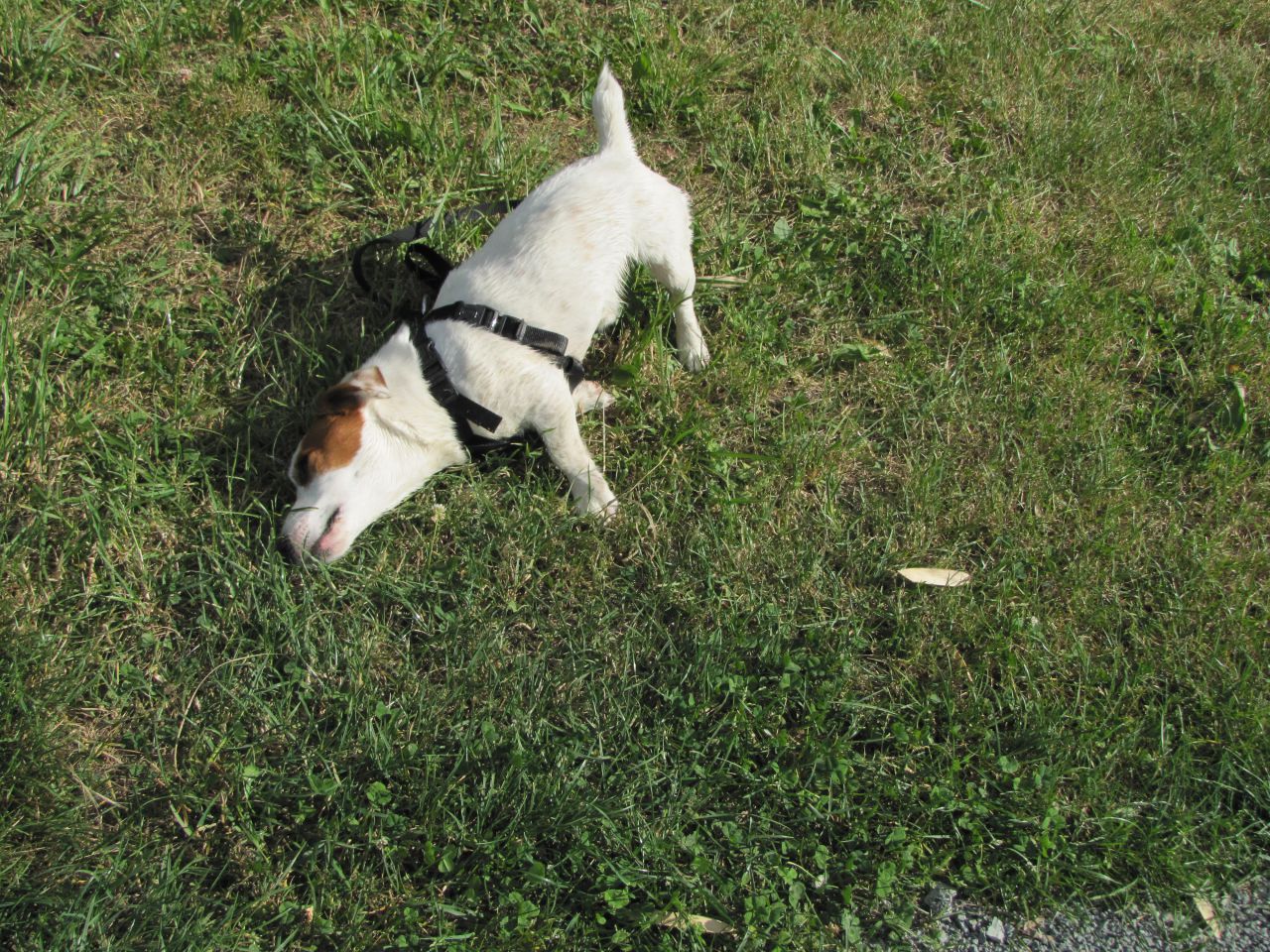| Dire merci | c'est dur sa vie à diego, vautré dans l'herbe !! Je le trouve vraiment magnifique ton chien Jess, j'adore sa morpho et ses cocards sur les yeux ! |