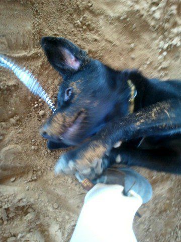| Dire merci | salut a toutes et tous! voici des news au retour de mon week end a Arles! Alors, Floyd fait 10kg a 3mois pile ils sera plus gros que ce que nous le pensions! de plus nous avons vu une dame avec un jeune chien qui nous a dit qu'il était pareil a son age, son chien adulte fait 37kg ... au lieu de 23 vas falloir s'adapter. ce qui est rigolo c'est qu'ils avaient presque la même taille de pattes ! Sinon, nous sommes allés a la plage, le petiot a bien nagé (je vous expliquerais pourquoi après) a été très sage et nous attendait en liberté a coté du parasol! Il a rencontré Radja qui lui était ravi il en est amoureux! que de joie pour moi mais difficile de gérer les deux car je ne pouvais pas le lacher au milieu de l'écurie et pendant que je longeais. Chez mes parents, il a été propre presque tout dessuite avec l'accès au jardin sur demande il a pu courir en liberté, manger de l'herbe, des bouts de bois... l'éclate quoi. Mes parents n'étaient pas rassurés par le fait que j'ai un chien mais ma mère l'a tout de suite adopté mon père ça a été plus long mais bon,a par quelques petits besoins dedans la nuit, il a été exemplaire! et.....mon père qui la regardé sous tous les angles nous a appris qu'il a......... les pattes avant palmées (d'où le nage bien) et des ergots aux pattes arrières aussi!!!! et le palet taché des bergers .... peut etre en serons nous un peu plus sur ses origines? en tout cas je vous laisse y réfléchir pendant que je tente de récupérer des photos |