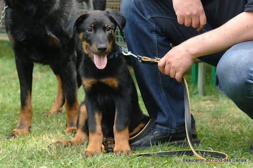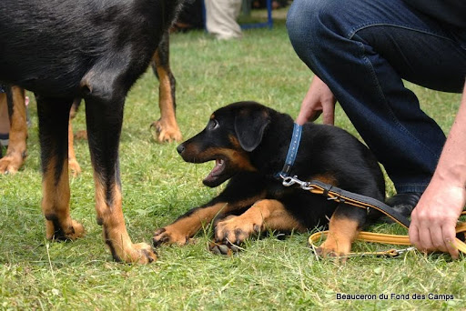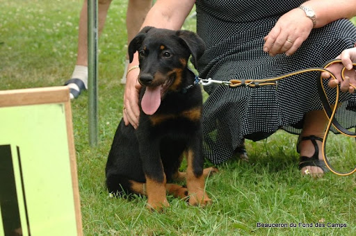 Déconnecté | Hihihi, Voici quelques photos de Joy à la nationale d'élevage Beaucerons du Luxembourg. Comme j'avais oublié l'apn, c'est notre éleveuse qui a bombardé (un grand merci à elle )Joy nous gratifie d'un joli "sourire" malgré la chaleur ! C'est quoi ce bruit de Pouic-Pouic ? Hé ! Toi, le grand chien là... Tu crois que j'ai peur de toi ? (Admirez les regard qui en dit long sur ses intentions !) Tayauuuuut ! Et pan, en plein dans le poitrail. (J'adore la non-réaction du grand qui se demande qui c'est le moustique qui ose s'attaquer à lui ). Je sais même poser quand je veux bien... mais juste quand c'est pas moman qui prend les photos ! La juge, extrêmement sympathique et douée avec les super babys... C'est fou ce que Joy a l'air d'avoir peur. Par contre, pour la statique... Suffisait de lui demander gentiment en fait ![]() Et vas-y que je pose également après le jugement (et après avoir accroché les jean's de maman tout le long du trot ^^) Elle a l'air tellement sage sur les photos que j'ai du mal à croire que c'est bien la même chienne Joy a donc fait très prometteur (génial ma pepette) et si vous aimez les Beaucerons, vous trouverez pleins d'autres photos sur l'hébergeur photos de l'éleveuse (il n'y en a QUE 51 de Joy )Lien |
