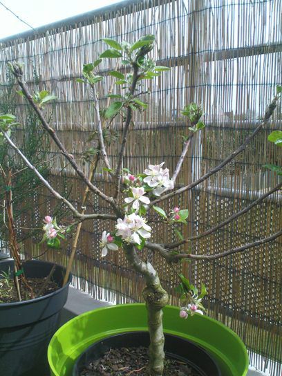 DéconnectéDire merci | Je fais remonter le post, juste parce que j'adore cette période de l'année! Mon tout nouveau pommier en fleur. Offert par mes anciens collègues de travail la semaine dernière pour mon départ Et il me fait déjà plein de fleurs, je vais peut-être pouvoir me régaler cet automne! ![]() Mon airelle que j'ai dû tailler alors qu'elle était superbe à cause d'une attaque de chenilles (balcon bio sinon je leur aurait bien cassé la g****... mais ça fera de superbes papillons ensuite ) Il ne me reste plus qu'une grappe de fleur ![]() ![]() Muriers/framboisiers et genêt qui mènent leur petite vie ![]() |