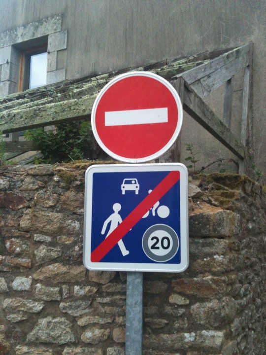| Dire merci | Sens interdit. Route interdite à tout véhicule ou piéton allant au-delà de 20km/h Booooh |