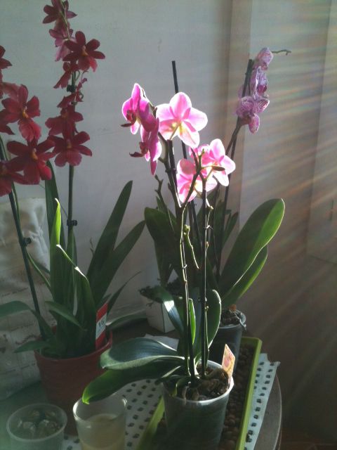 Déconnecté | hum, je crois bien que les phals sont quasi les seules à ne pas tellement aimer sortir si j'ai bien lu... Euh mes phal passent le printemps/été dehors, aux beaux jours quoi, et il faut voir comme elles se plaisent Des feuilles à gogo, pareil pour les racines, et dès que tu les rentres, hop : nouvelles hampes pour toutes sans exception! Donc aucun risque à les mettre dehors bien au contraire! Ça leur fait le plus grand bien! ![]() Et c'est d'ailleurs grâce à cette technique que j'ai fait repartir mes 2 rescapées trèès mal en point. |