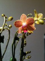 | Dire merci | Zorose oui c'est celle qui était en vase avec billes d'argiles mais maintenant elle est suspendue à la tringle à rideaux pour aérer les racines entre les bains vu que les soleil ne tape pas sur la vitre alors en feuilles il doit m'en rester 1 seule avant la floraison, il me tarde tellement !!!! Equiwilson est magnifique!! phal equestris fairy tales est étrange, ca fait bizarre |