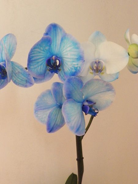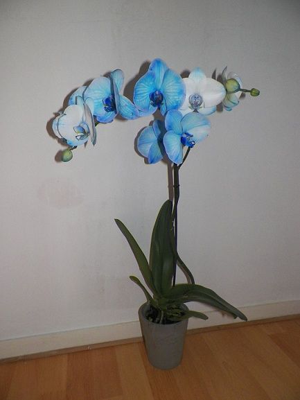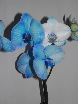 Déconnecté | Les bleu, il s'agit de bleu de méthylène injecté dans les hampe florale avec une aiguille, si tu regarde bien tu verras les points d'injection sur les hampes. J'en ai eu une, après sa floraison elle est crevée... |