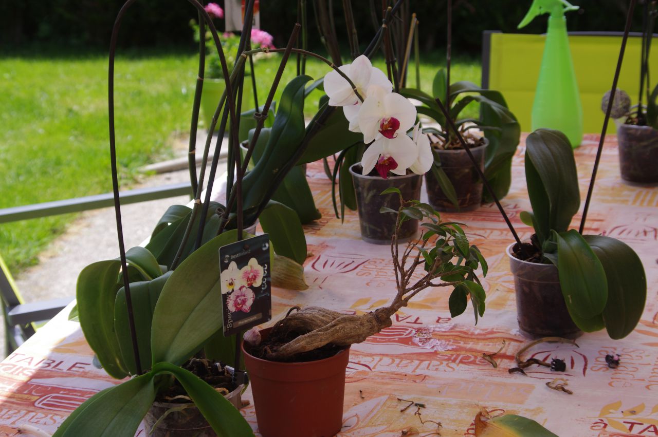 | Dire merci | Bienvenue Didie! Ce sont des phals? moi je ne vois d'erreur dans ce que tu fais... Plus proche des fenêtres c'est possible (moi en bretagne j'en ai une qui adore rôtir au soleil (bon il n'est pas violent faut dire si c'est trop fort il faut un voilage)? tu mets de l'engrais de temps en temps? tu as rajouté des écorces? pas tout changé? les racines étaient comment? |