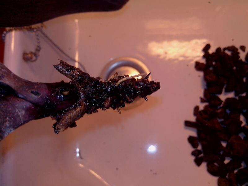| Dire merci | Bon, du coup, je me suis occupée de ma petite vieille. ![]() Je l'ai sorti, nettoyé délicatement et voilà ce que ça donne : ![]() Serait-ce le début d'une tige ou d'une racine ? ![]() Micro-racine... ![]() ![]() ![]() ![]() J'ai vidé le pot pour nettoyer, virer la tourbe et ne garder que les copeaux que j'ai séché. Voilà ce que ça donne : ![]() ![]() Pour l'instant, je ne l'ai pas rempoté. Je vais attendre que ça sèche un peu. |