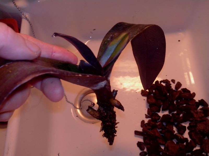 | Dire merci | rha oui, plus de racines...substrat trop rétenteur et trop d'arrosage (1 fois par semaine c'est ok pour l'été, mais trop jours l'hiver où il faut passer à 10 jours voire plus) bon, ben tu remets dans tes écorces triées (nickel) dans le plus petit pot que tu trouves (yaourt transparent par exemple) dans lequel tu fais des gros trous dessous et tu plantes la plante dedans. Au chaud, lumineux sans soleil direct et tu pries. Au mieux, tu lui mets une "cloche" ouverte en haut et en bas avec un grosse bouteille si t'as ça , sur un lit de gravier (ou de billes d'argiles) mouillées pour favoriser l'hygrométrie... Dans une Mystic'serre (brevet déposé! )Lien ou alors tu tentes la plante posée sur un lit de mousse humide dans un sac plastique...(ça je n'ai jamais tenté, le risque de moissisure est trop élévé je trouve mais apparemment ça marche bien...) (j'ai pas le temps de te chercher un lien tout de suite...) |