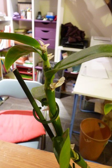 Déconnecté | Il a une tronche sympathique ^^ Surprise chez moi, mon Sedirea japonica sort une hampe :-D A voir s il se plaira autant dans sa nouvelle maison. |