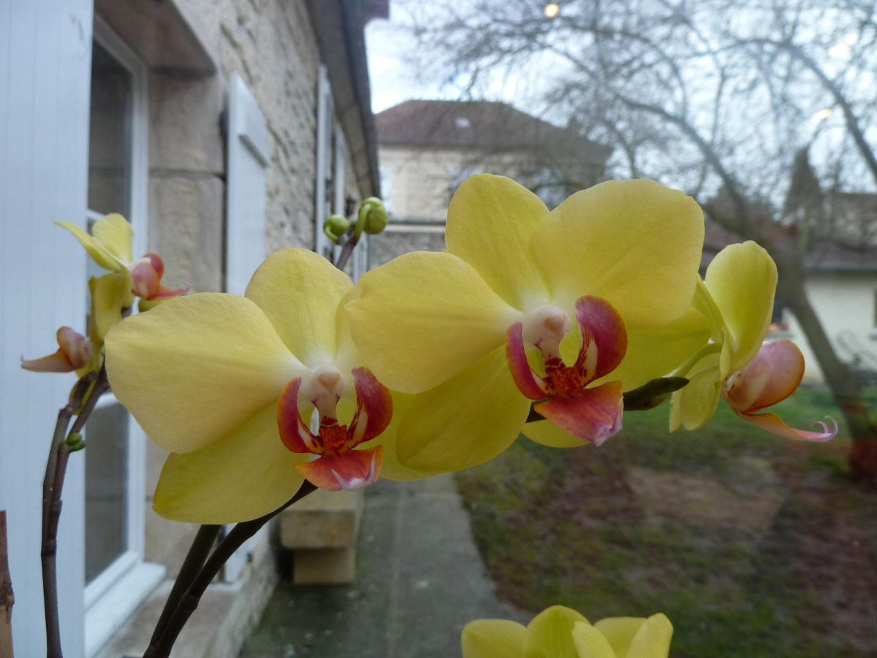 | Dire merci | Je vous ai fait des petites photos de mon trio. celle-ci a 6 hampes, 19 fleurs et 5 boutons .... c'est celle que j'ai récupéré dans une poubelle il y a pratiquement 3 ans. ![]() celle-là a 5 hampes, 13 fleurs et 10 boutons ![]() et la petite dernière d'hier est en train d'ouvrir 3 fleurs, il reste 5 boutons à fleurir sur son unique hampe. ![]() |