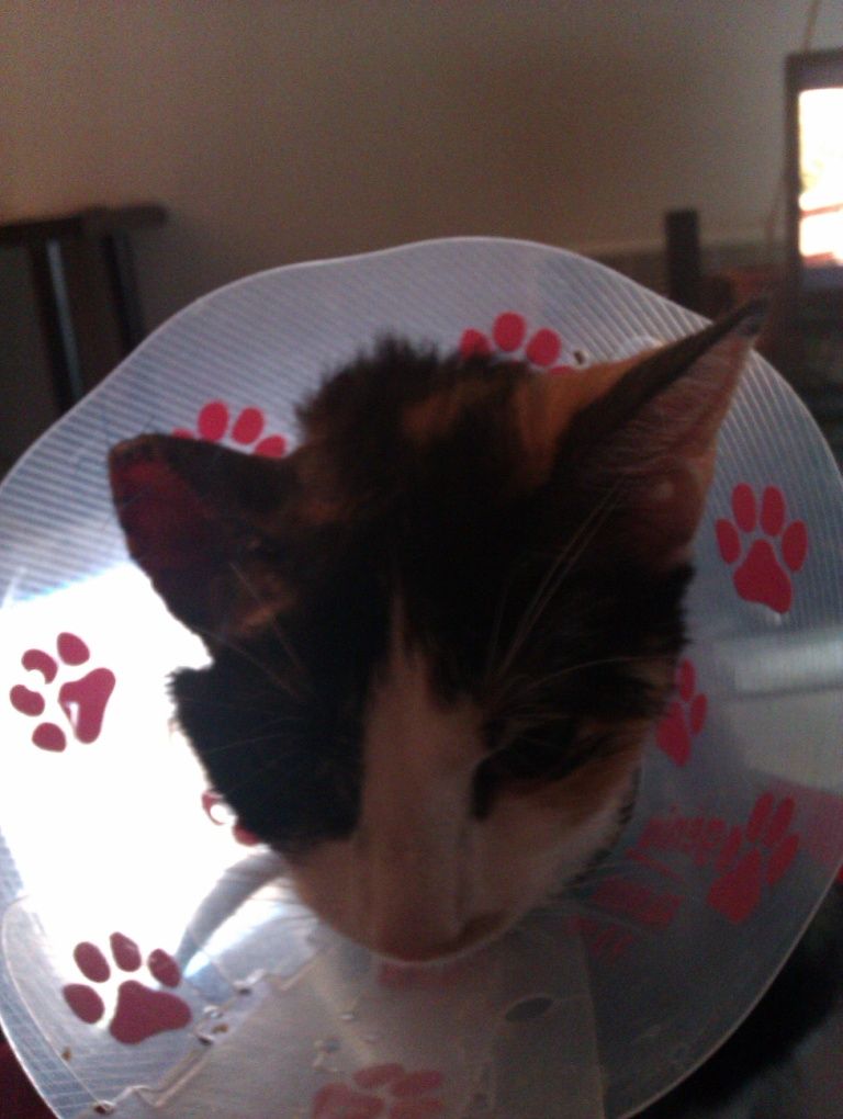 | Dire merci | Mieux! Elle a la diarrhée encore un peu (rien d'anormal après une anesthésie) par contre elle déprime avec sa colerette. Elle ne joue plus, ne me mord plus elle est tristounette. Je lui enlève plusieurs fois par jour quelques minutes en restant à 5cm d'elle pour ne pas qu'elle se gratte son oreille. La justement elle ne la plus, elle se lèche partout elle a les yeux grands ouverts là je retrouve mon chaton! Les fils lui seront retirés samedi 16, il m'a dit qu'il devrait peut etre de nouveau l'anesthésier pour lui enlever et ca ca ne m'enchante pas du tout. Mais d'un autre côté je le comprends^^ J'essaie de prendre des photos ce soir sans colerette^^ |