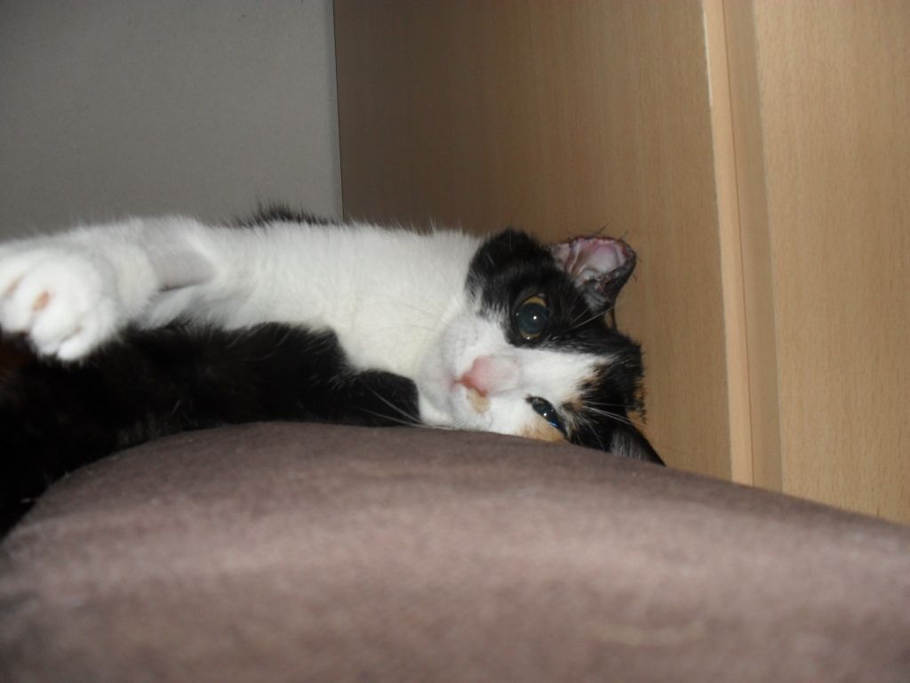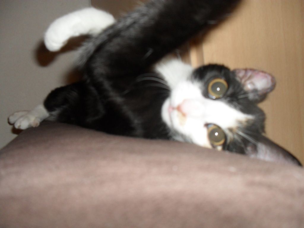 | Dire merci | MDR!!! je précise qu'elle est tombée toute seule (du haut du canape moins de 1metre) au moment ou j'ai pris la photo! mais pas de bobo elle m'a sauté dessus juste après! |